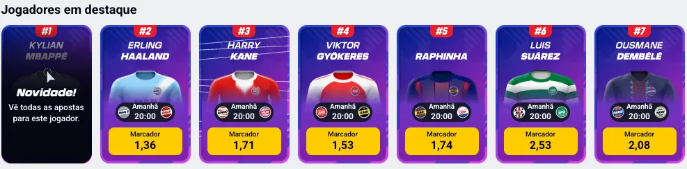 A Betclic tem uma funcionalidade única que lhe permite focar as suas apostas num ou mais jogadores com o novo mercado de apostas "Jogadores em Destaque".