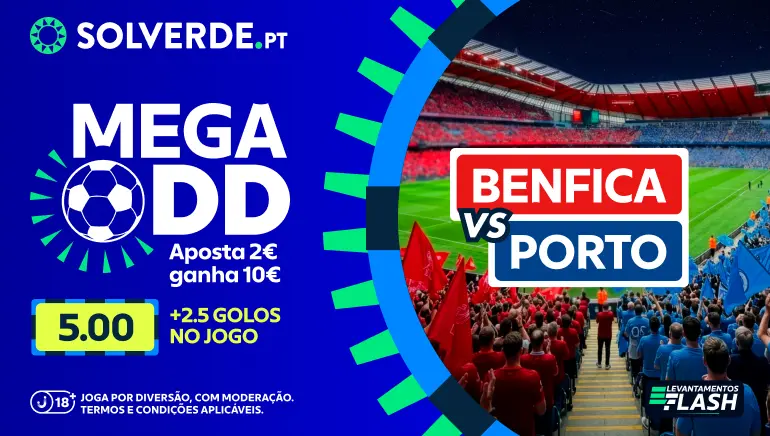 No dia 8 de março joga-se o grande clássico entre Benfica e Porto e este é decisivo...tanto para as equipas como para si. Para as equipas porque pode deixar o FC Porto com via aberta para se tornar campeão nacional e para o Benfica voltar a entrar, definitivamente, na luta pelo título. Para si porque tem uma oportunidade espetacular de multiplicar o seu dinheiro através da Mega Odd que a Solverde preparou para si!