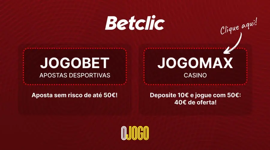 Na Betclic pode receber uma aposta até 50 euros. Ao fazer o registo, deve utilizar o código promocional Betclic JOGOBET. Depois, deve fazer um depósito de pelo menos 50 euros e cumprir as restantes condições de utilização.