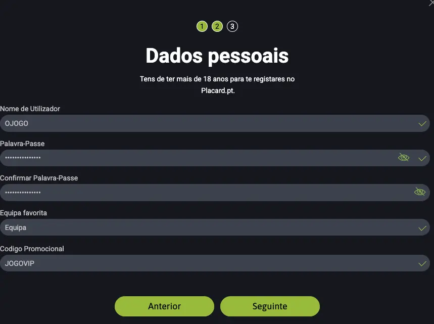 A Placard.pt oferece dois códigos distintos no registo, um para desporto e outro para casino. Analisemos cada um.