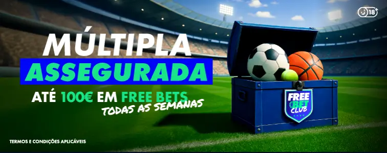 - Aposta Múltipla: 10€ com 3+ seleções e odds mínimas de 2.00.