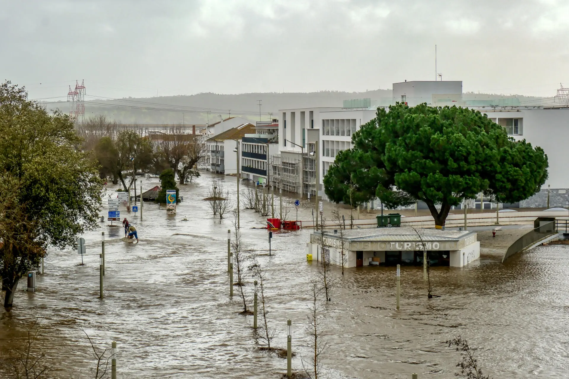 No balanço que apresentou a Marcelo Rebelo de Sousa na manhã desta quinta-feira, a presidente do município revelou que foram retiradas de casa 143 pessoas, desde a quarta-feira passada, quando começou a inundação na baixa da cidade, com o Rio Sado a galgar a margem e a inundar a Avenida dos Aviadores, devido ao mau tempo e a depressão Kristin, à qual se seguiu a depressão Leonardo. Veja as imagens, abaixo: