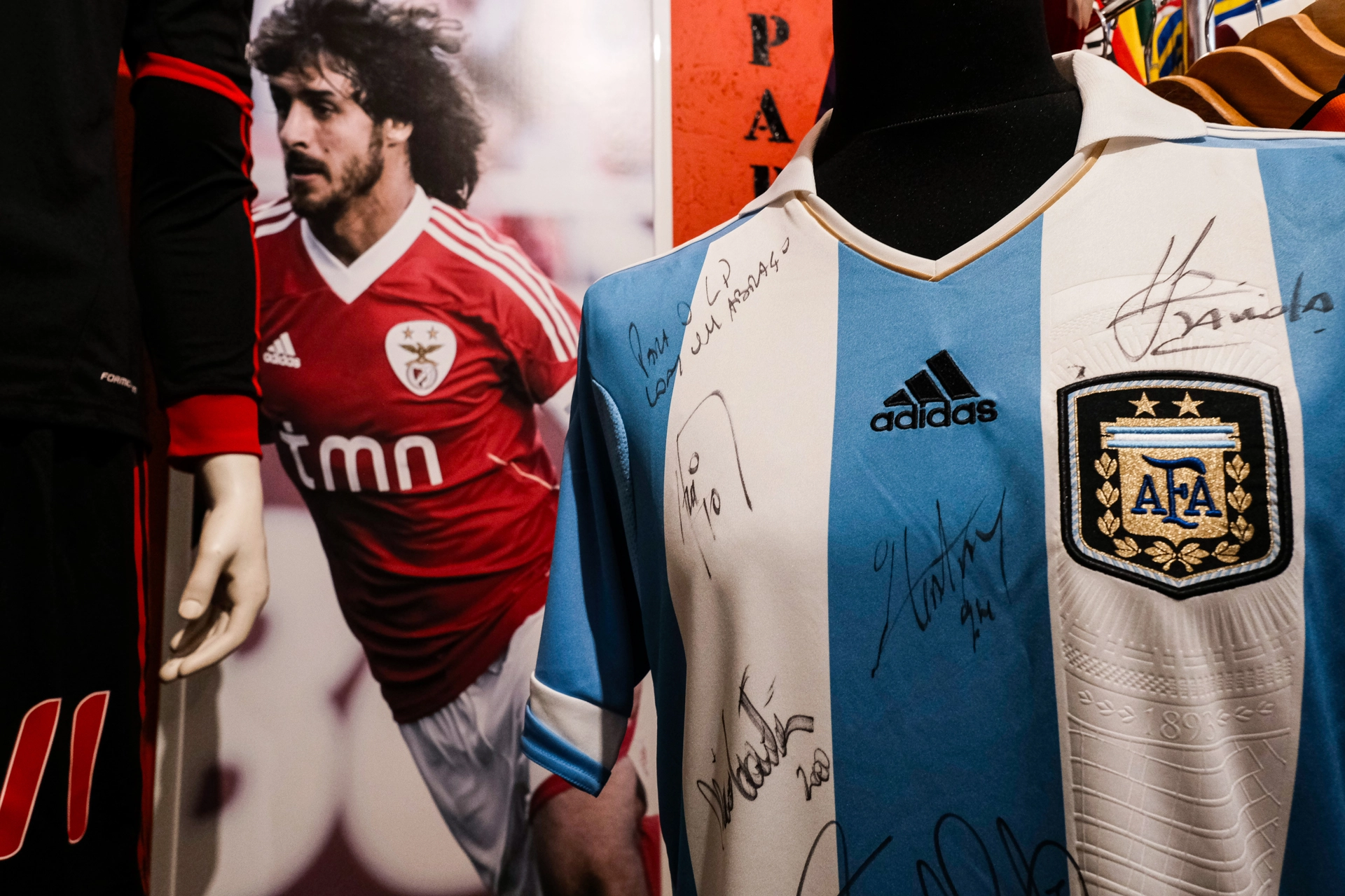 Irresistíveis pedaços de história, representem um jogo único, uma época dourada, ou um simples gesto de entrega de uma peça carregada de identidade. No MLP8, em Leiria, nem é preciso vasculhar, o olhar faz o trabalho, já que a exposição prima pela organização, por uma estética desenhada pelo mentor, sendo fácil descobrir onde moram Neymar, Salah, Raul e outras figuras internacionais, ou Lampard numa vitrina especial, por ser o homem de culto da casa, referência numa montra alusiva ao 8, o número mágico de Luís Paiva, que detinha enquanto jogou na formação da União de Leiria ou em vários clubes da distrital. Ainda há tempo para uma homenagem a uma equipa da União de Leiria, que protagonizou campanha histórica na Intertoto, havendo camisolas distribuídas por todo o espaço que representam, sobretudo, ofertas de vários jogadores da nossa praça. Recordam-se tempos de Moutinho no Sporting, mas é o mapa nacional de vários elencos da I Divisão que pesa, pelo qual se conhece a história a cada visita. Da perdição ao deslumbre, também se espremem mantos exóticos, ofertas de quem se aventurou jogando pelo globo, sem medo de contextos ou continentes, de mente aberta, como deve ser.