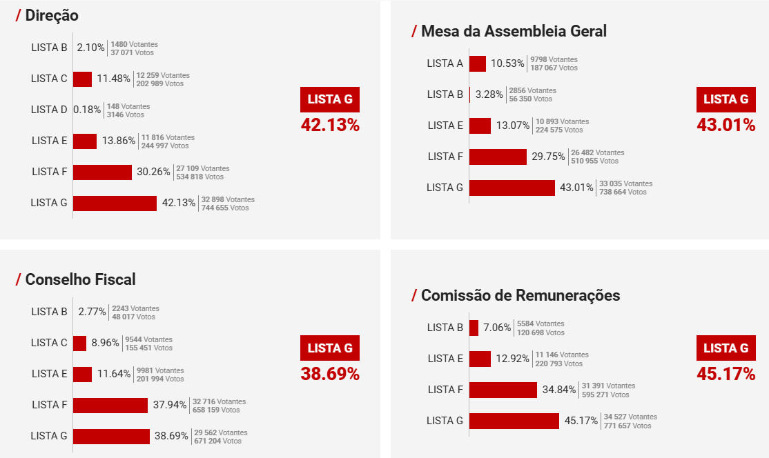 "Foi, também, um dia de inexcedível demonstração de profissionalismo e de paixão pelo clube por parte de todos os colaboradores que tornaram possível que um ato eleitoral de dimensão tão extraordinária decorresse com inesquecível lisura e exemplaridade. Em nome pessoal e da Direção que tenho a honra de liderar, expresso o meu sincero agradecimento a todos os Sócios, a todas as candidaturas e a todas as pessoas envolvidas neste ato eleitoral, que ficará para sempre inscrito como um dos momentos mais marcantes da história do nosso Sport Lisboa e Benfica", completou.