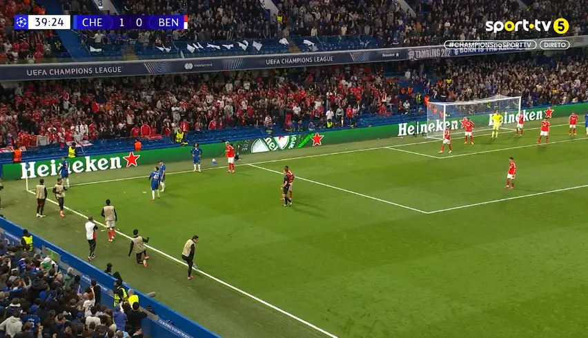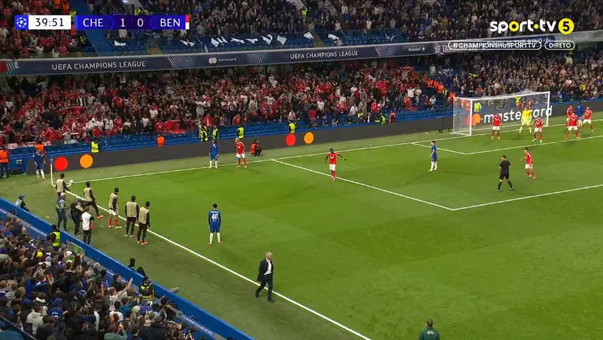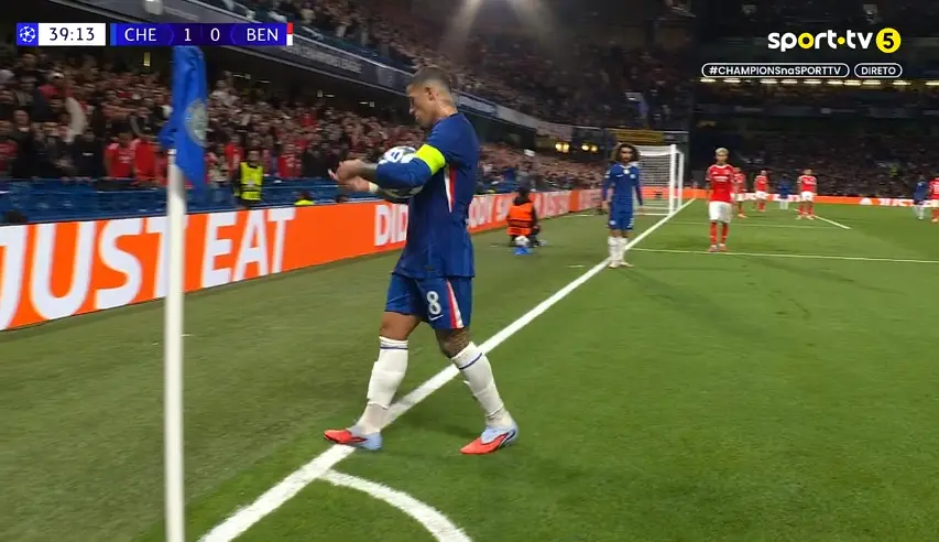 Médio argentino do Chelsea, ex-jogador das águias, preparava-se para bater um canto junto à zona onde se encontravam os adeptos encarnados. Voaram garrafas de água e até um telemóvel. Mourinho saiu do banco pedindo calma, com o jogo a prosseguir pouco depois