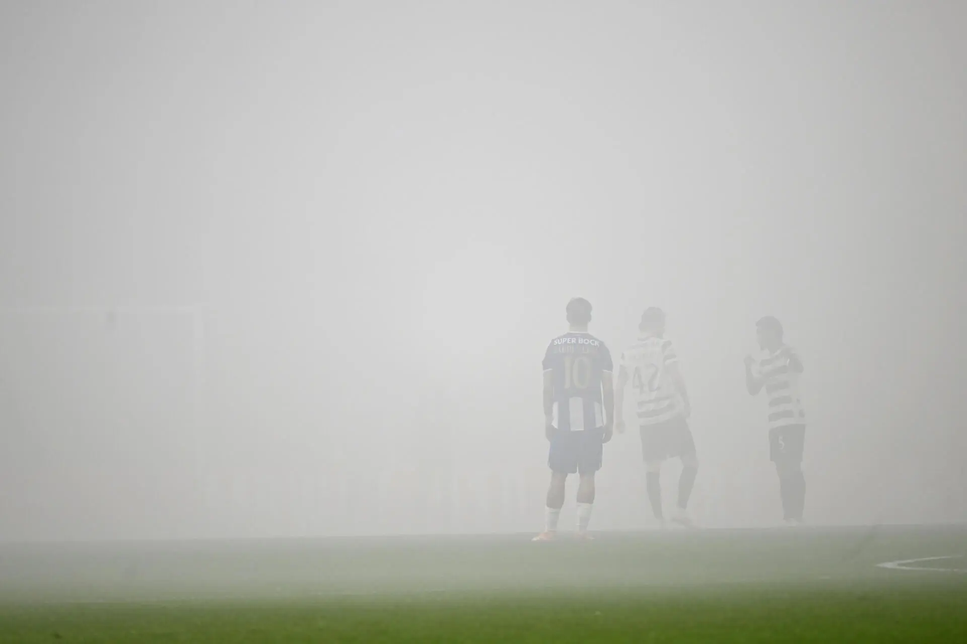 A fraca visibilidade provocou a interrupção por volta dos 33 minutos, após serem deflagradas tochas e potes de fumo pelos adeptos portistas. Voltou a jogar-se cerca de três minutos depois