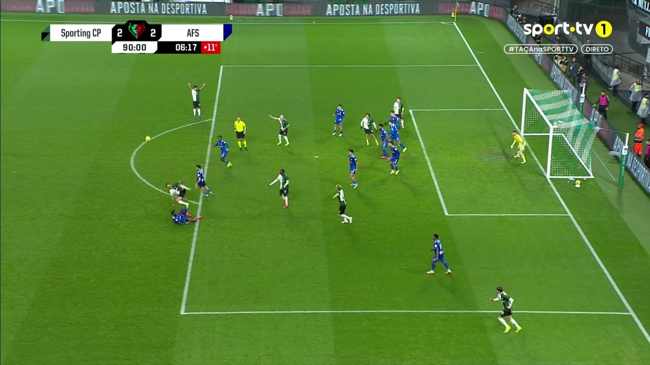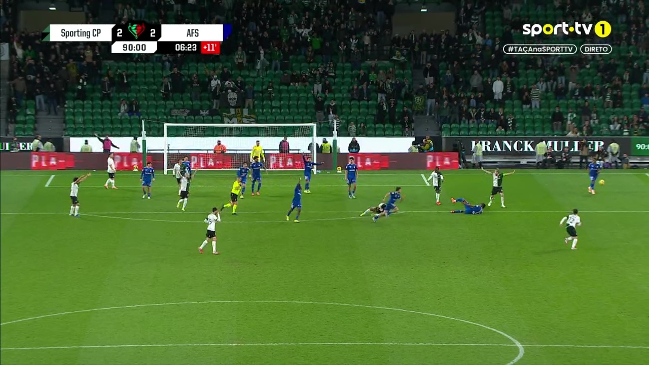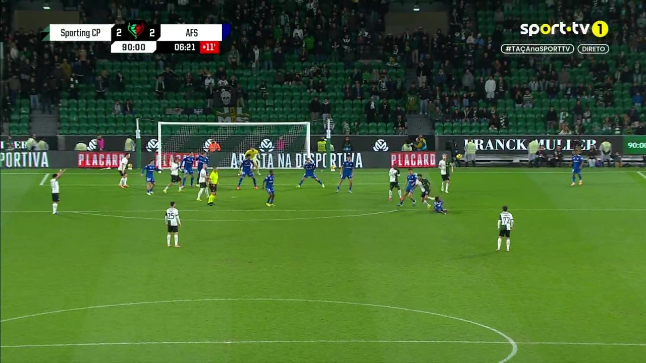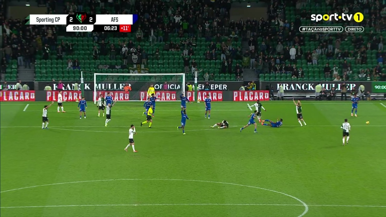Minuto 90+6: Sporting ganha um livre perigoso após disputa de bola entre Luis Suárez e Baroan, que fica muito queixoso. Jogadores ficam em choque com o estado da perna do jogador do Aves SAD, que parece partida. Luís Suárez levou as mãos à cabeça e Maxi Araújo rezou. Veja, abaixo: