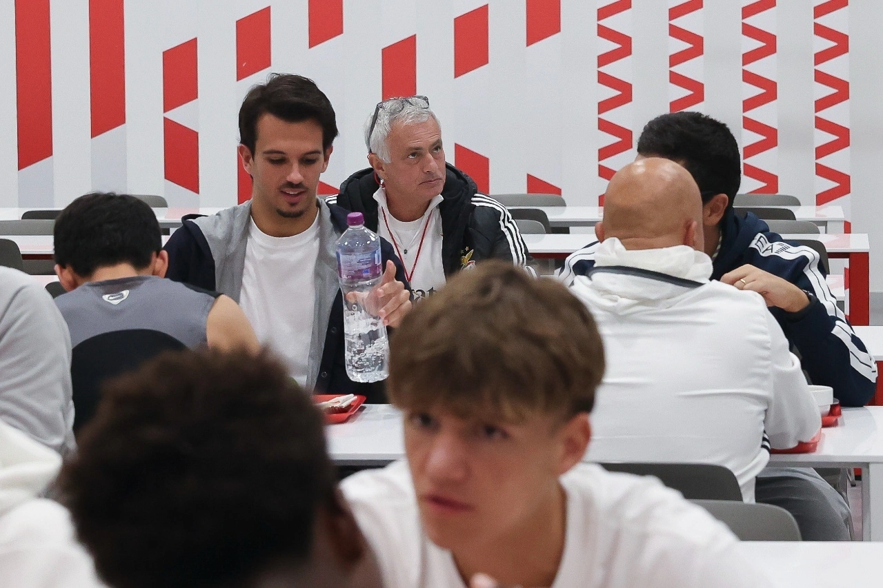 Benfica mostra Mourinho a partilhar refeitório com jovens da formação: "De sol a sol no Seixal"