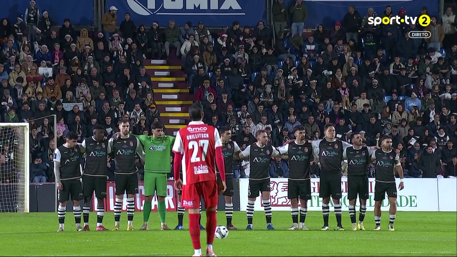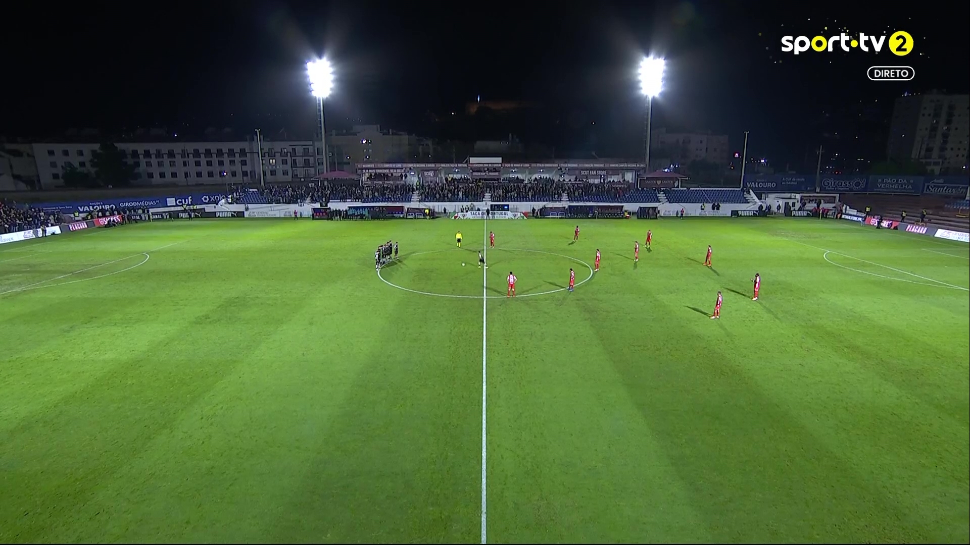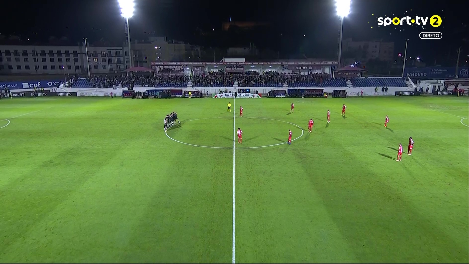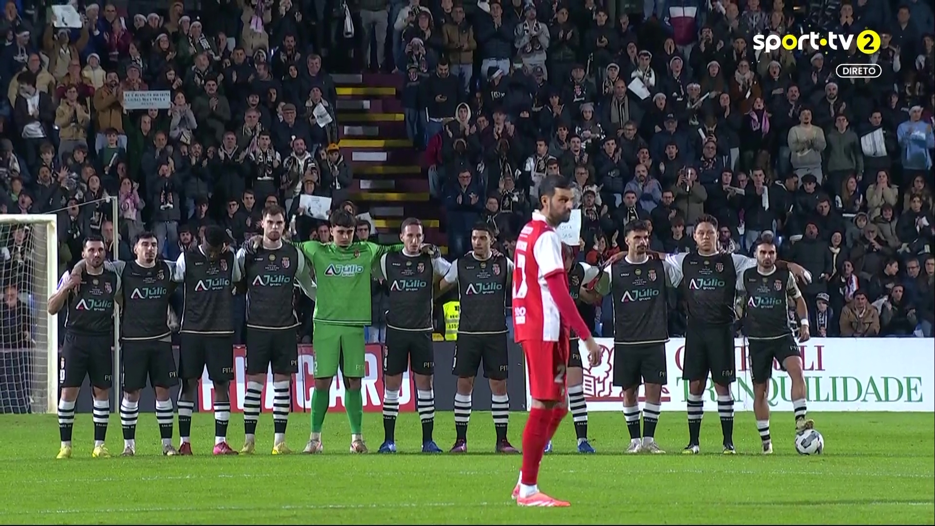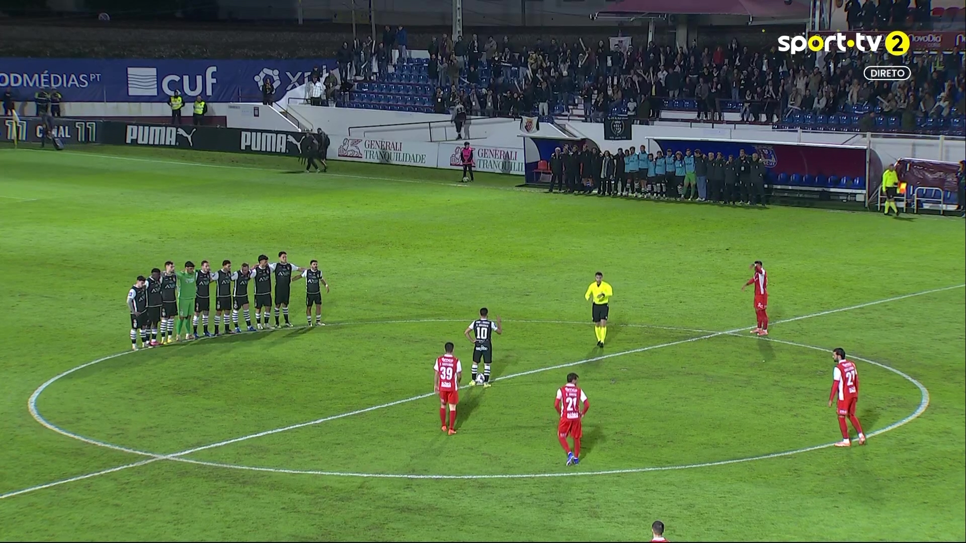 O onze dos pelicanos juntou-se na zona do meio-campo, sem que houvesse jogo, decisão respeitada pela formação bracarense, que também permaneceu imóvel durante o referido período.