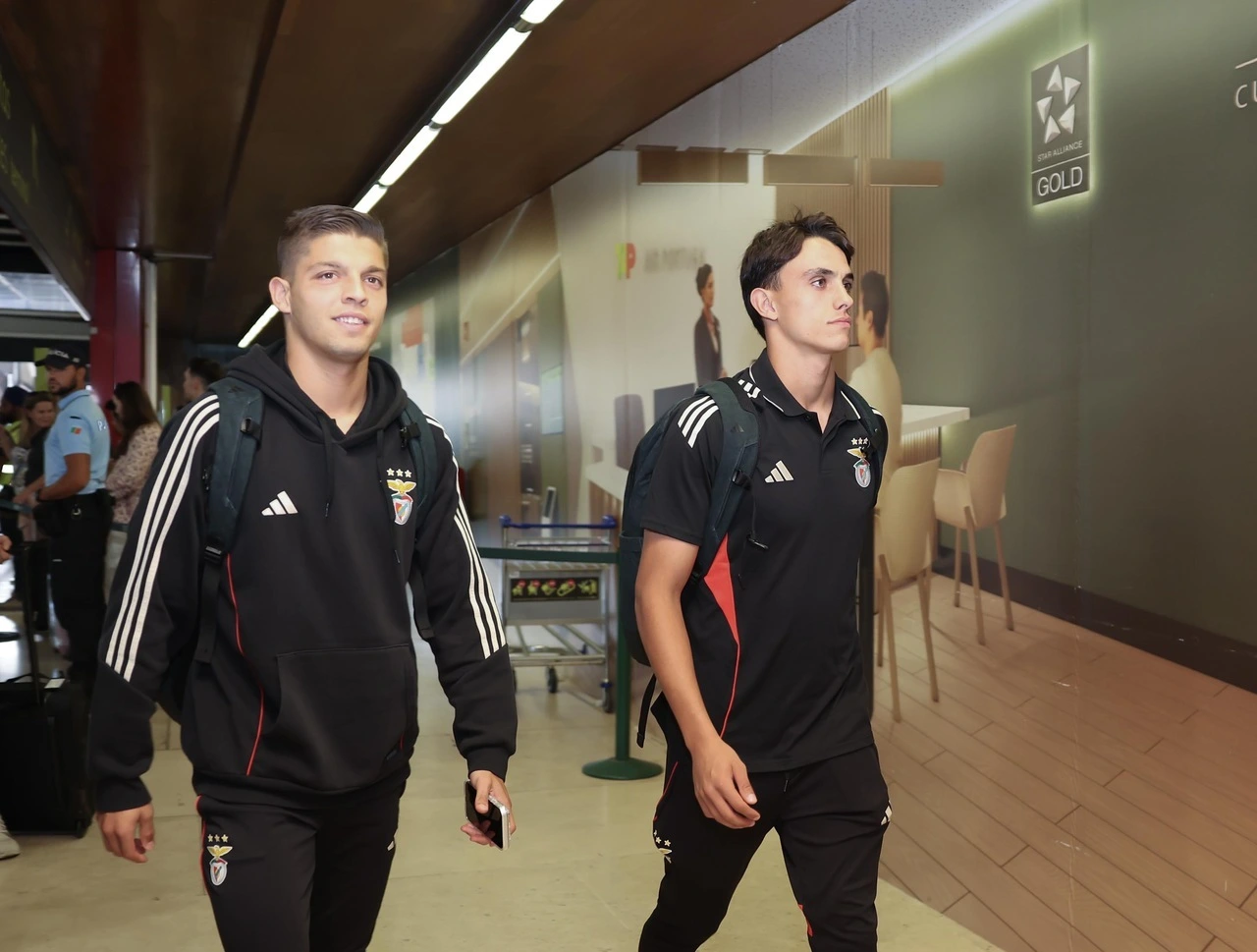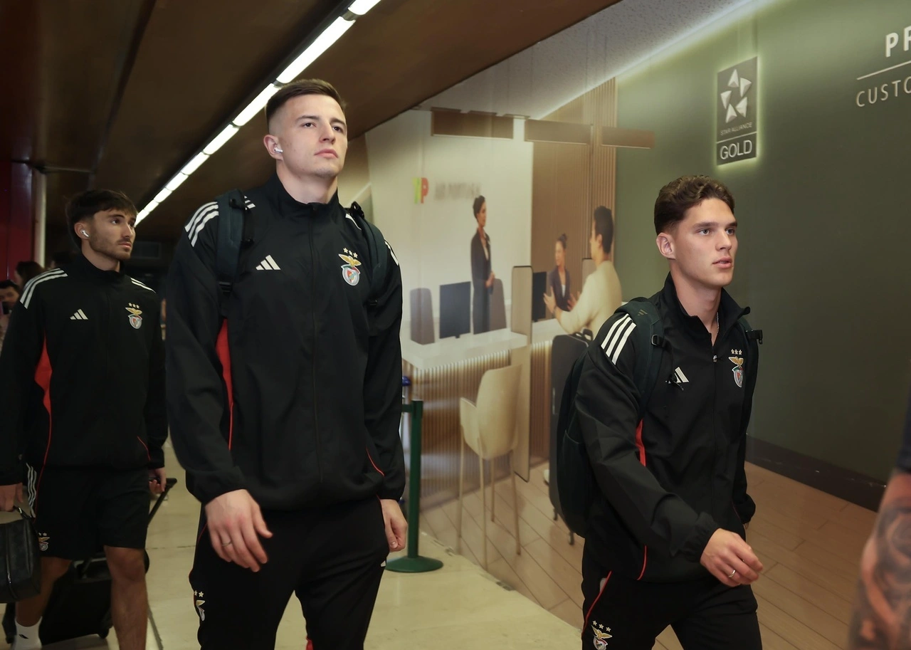 Comitiva partiu ao início da tarde desta segunda-feira rumo a Newcastle, onde amanhã (20h00) joga para a terceira ronda da fase de liga [fotos: Isabel Cutileiro/SL Benfica]
