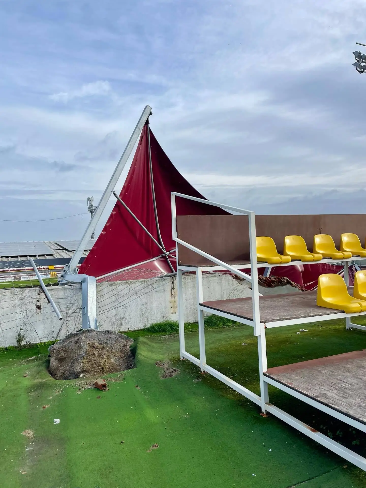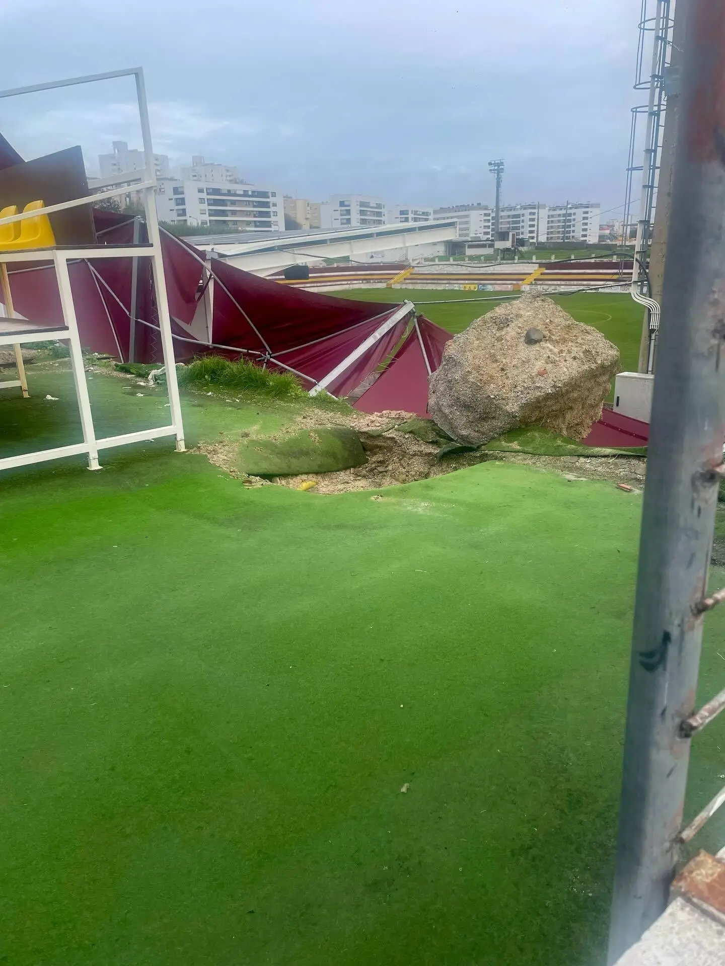 Clube de Lisboa, nono classificado da Série D do Campeonato de Portugal, partilhou fotografias dos sérios danos provocados na cobertura da bancada do campo de futebol de 7, ao lado do Estádio Engenheiro Carlos Salema