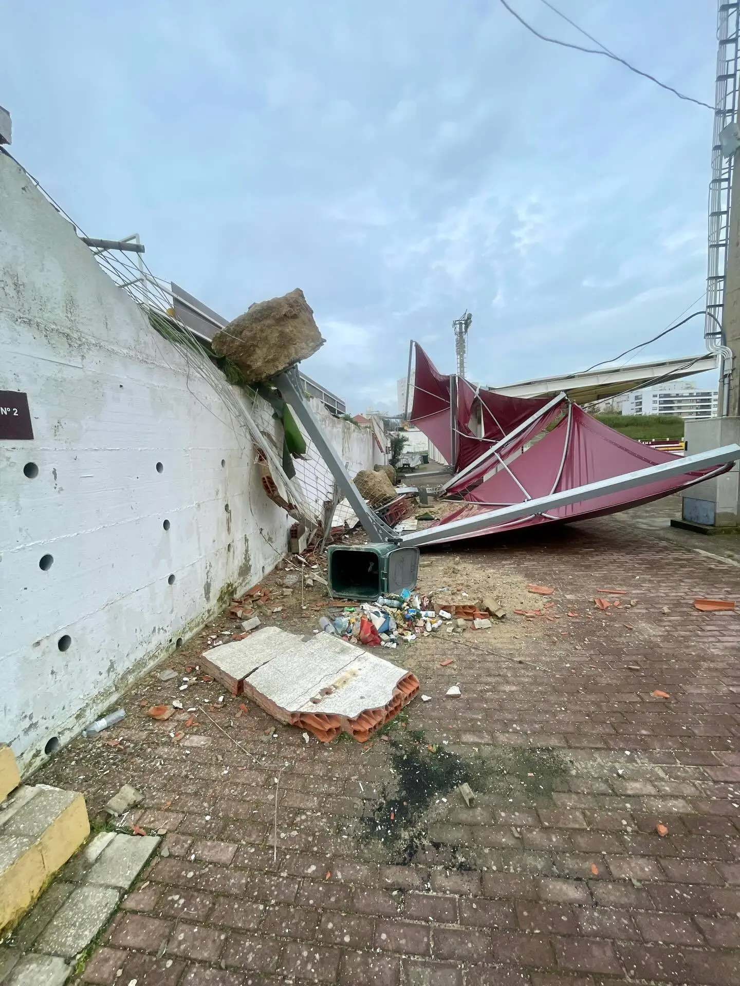 Os fortes ventos provocaram estragos no campo Eng. Carlos Salema, tendo levantado a cobertura do campo n.º2, com relva sintética recentemente instalada, e arrancado os pilares de sustentação, que tombaram.