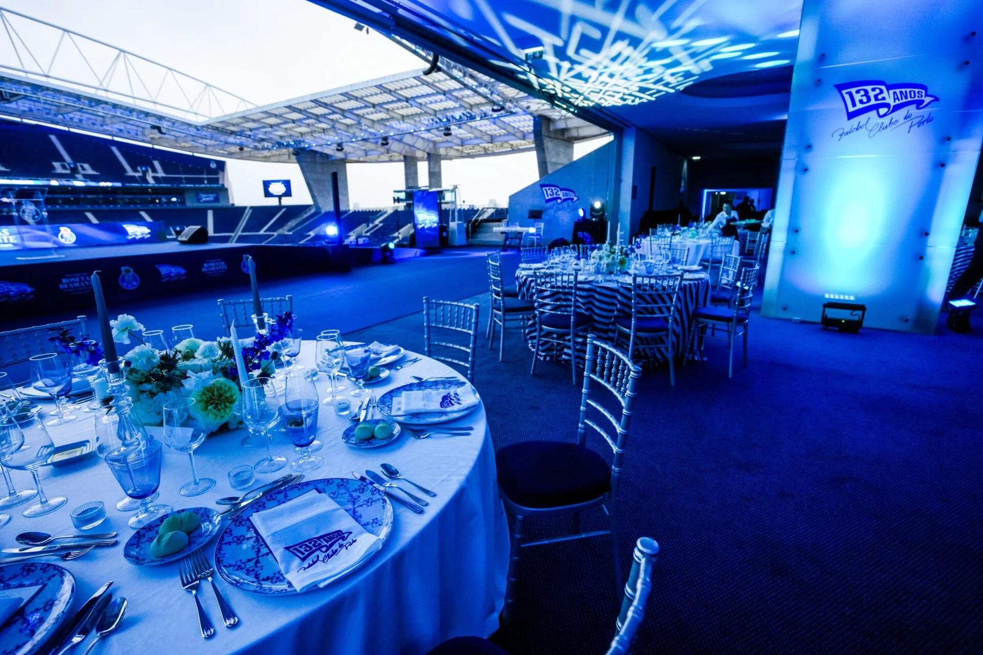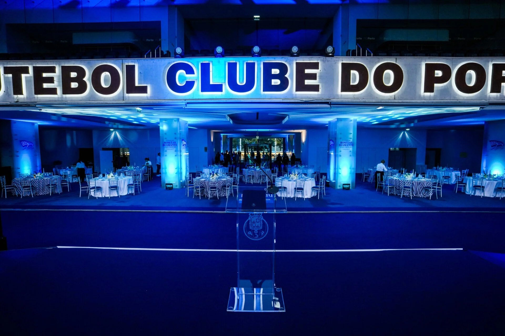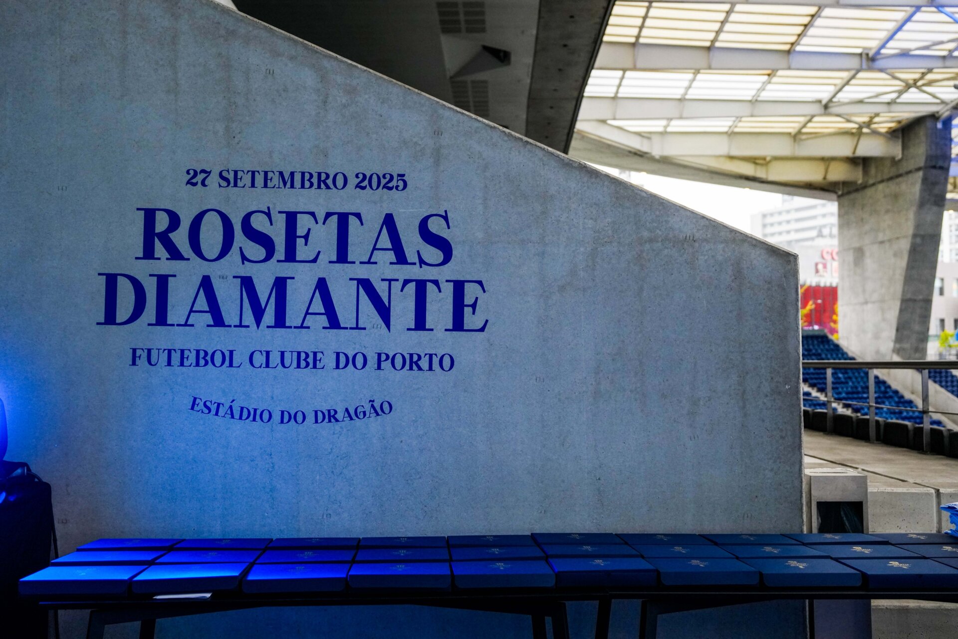 A luz azul passa a dominar o Estádio do Dragão, como se pode ver nas imagens partilhadas pelo FC Porto sobre a entrega das Rosetas de Diamante, este sábado