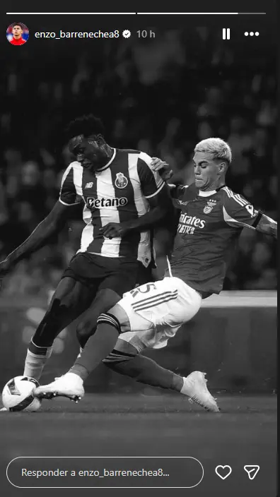 "HDMP [filhos de mil p..., assim se pode traduzir] Vemo-nos em breve", pode ler-se numa "storie" publicada no Instagram do médio argentino, na qual surge numa imagem do jogo do campeonato. Numa outra, Barrenechea mostra-se num duelo com Samu, avançado do FC Porto que esteve num momento quente com Pavlidis, mostrando-lhe o símbolo do clube e rejeitando um cumprimento do grego.