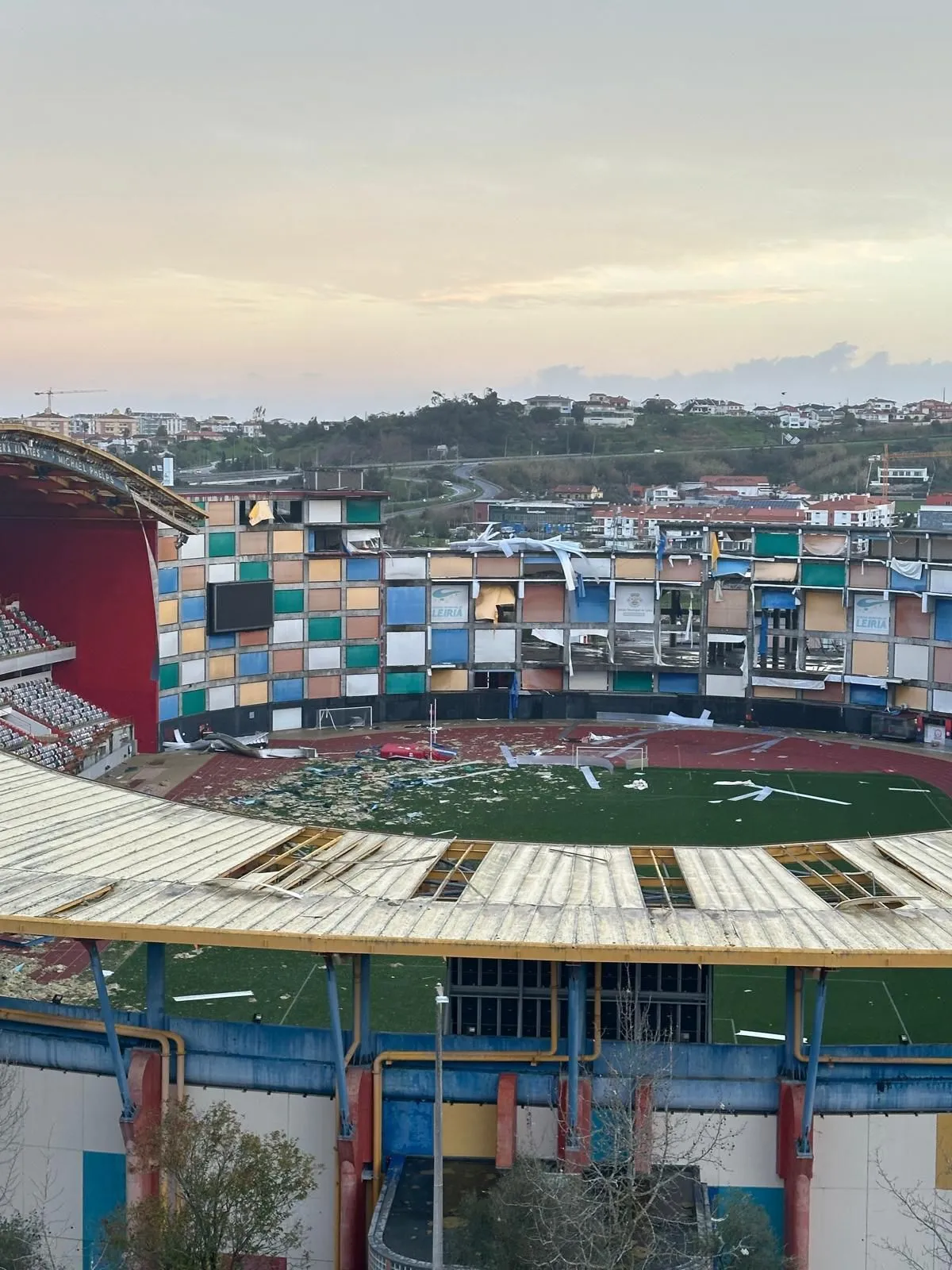 Estádio da União de Leiria ficou muito danificado após passagem da depressão Kristin