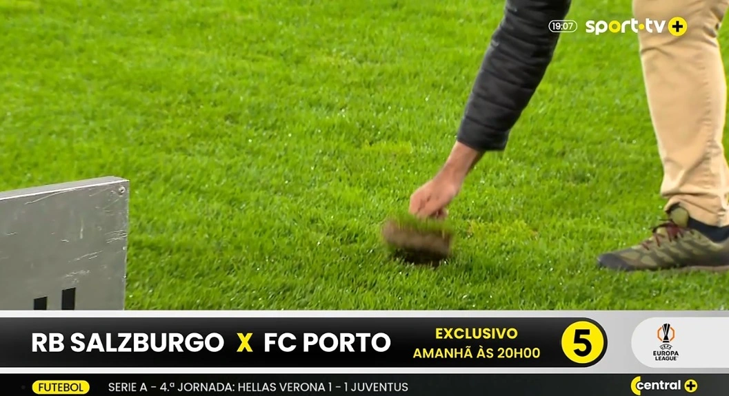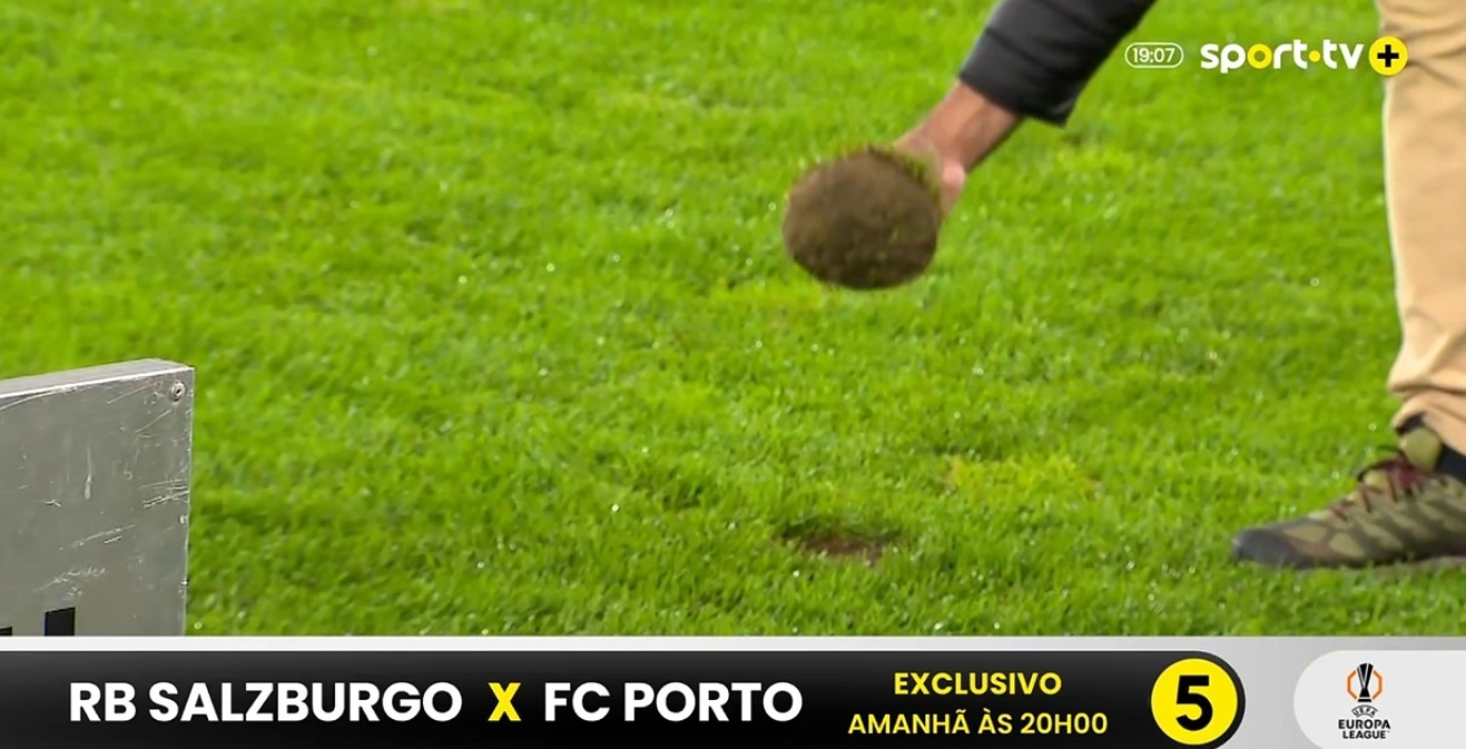 Na véspera do Red Bull Salzburgo-FC Porto (quinta-feira, às 20h00), jogo que marca a estreia dos dragões na Liga Europa, a condição do relvado do estádio dos austríacos preocupa, como demonstrado por um repórter da Sport TV, que retirou com facilidade um tufo de relva em direto, antes de o recolocar. Ora veja