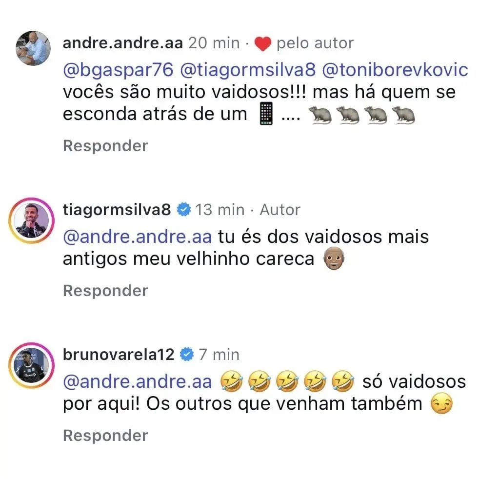 Bruno Gaspar, Borevkovic, Bruno Varela e até André André, ex-capitão, pegaram nas palavras do líder vimaranense e, entre brincadeiras a acusarem-se uns aos outros de serem os vaidosos, juntaram emojis jocosos, com risos e até ratos ao barulho, que fizeram da mensagem do presidente um prato cheio.