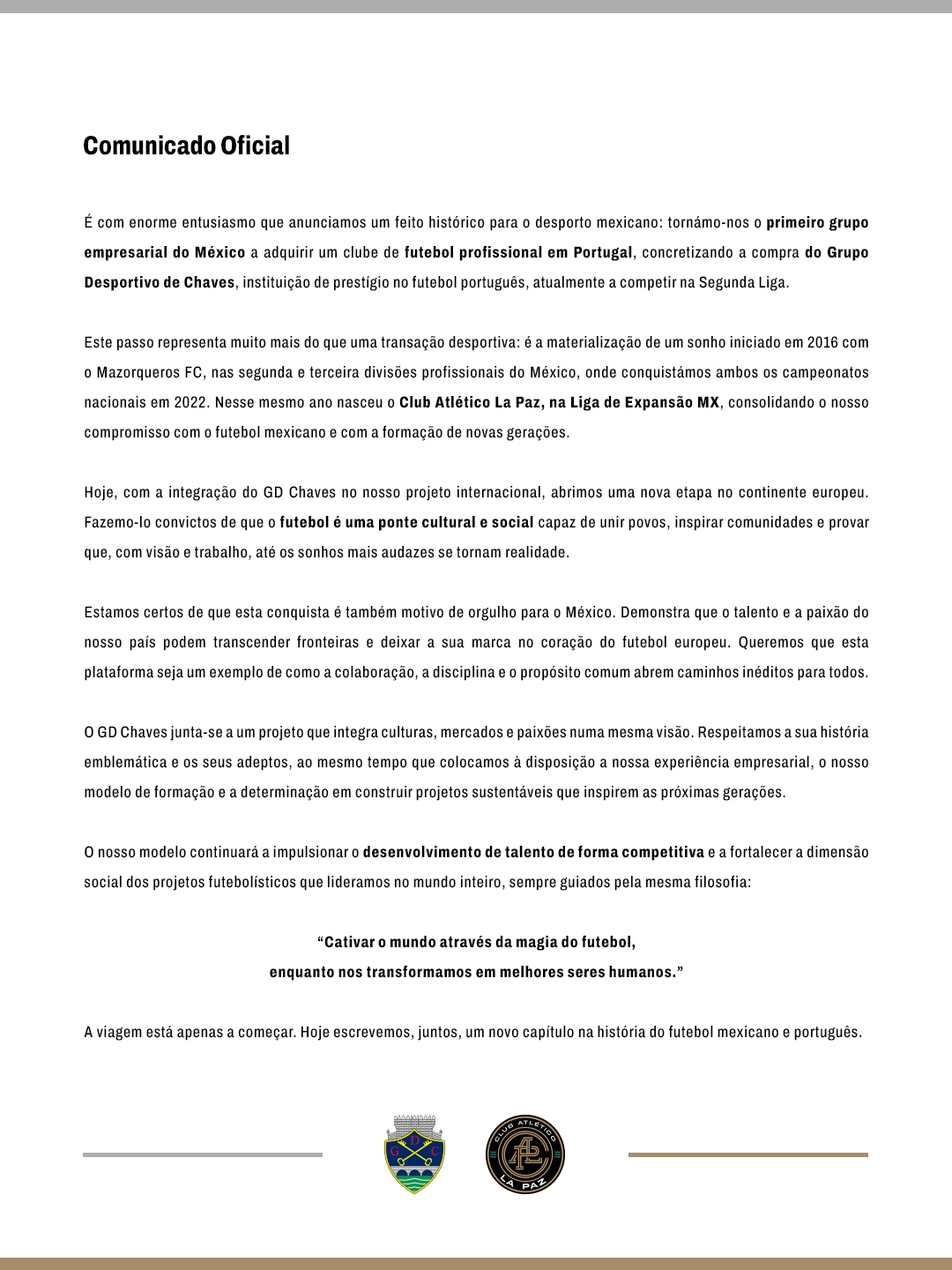 Dante Elizalde, antigo presidente do clube mexicano Santos Laguna, é o novo presidente da SAD do Chaves, representando o empresário Arturo Lomelí, que comprou 70% cento da sociedade, e não o Grupo Orlegi Sports, ao qual Elizalde esteve ligado, como foi noticiado.