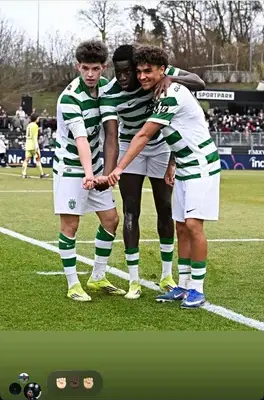 Na primeira, na terça-feira, partilhou uma fotografia da celebração do golo que Flávio Gonçalves, Salvador Blopa e Gabriel Silva fizeram ontem no jogo da Youth League contra o Eintracht Frankfurt, que os leões venceram por 1-0, passando aos quartos de final da prova. Os três jogadores fizeram um gesto simbólico da luta contra o racismo e o ala de 18 anos associou-se à iniciativa.