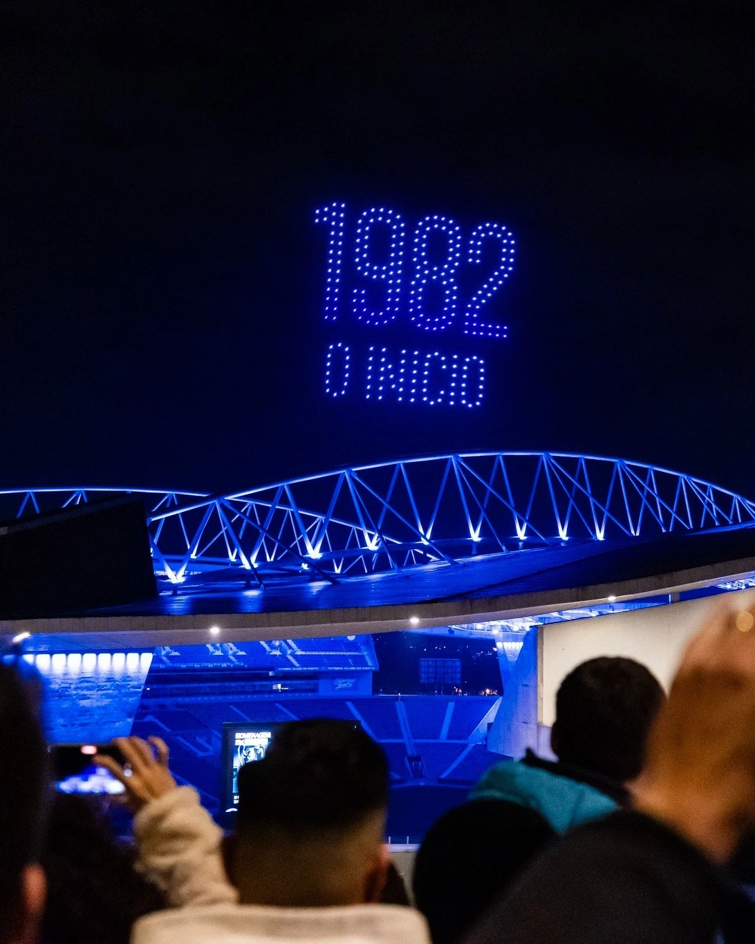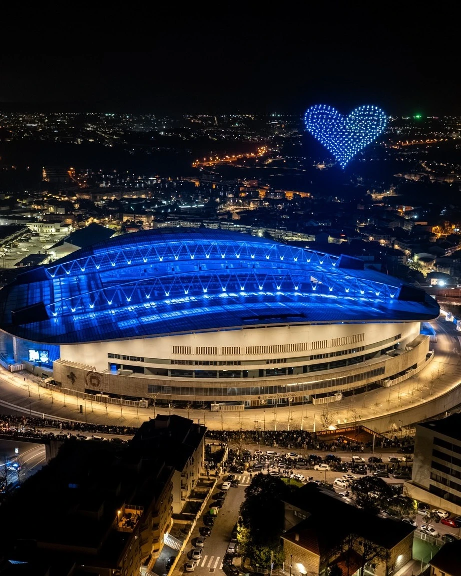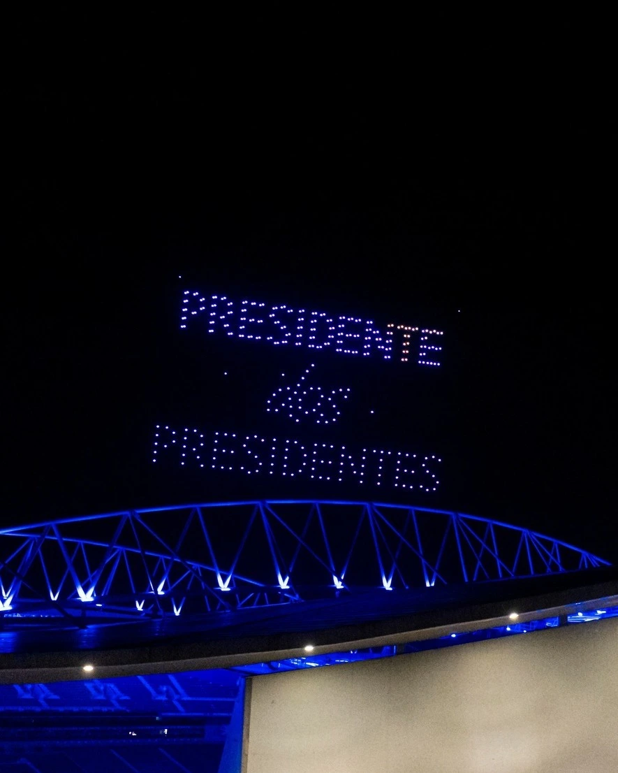 Na madrugada deste sábado para domingo, pelas 00h42, hora simbólica que evoca os 42 anos de liderança de Pinto da Costa, o céu sobre o Dragão foi iluminado com drones [Fotos: FC Porto]