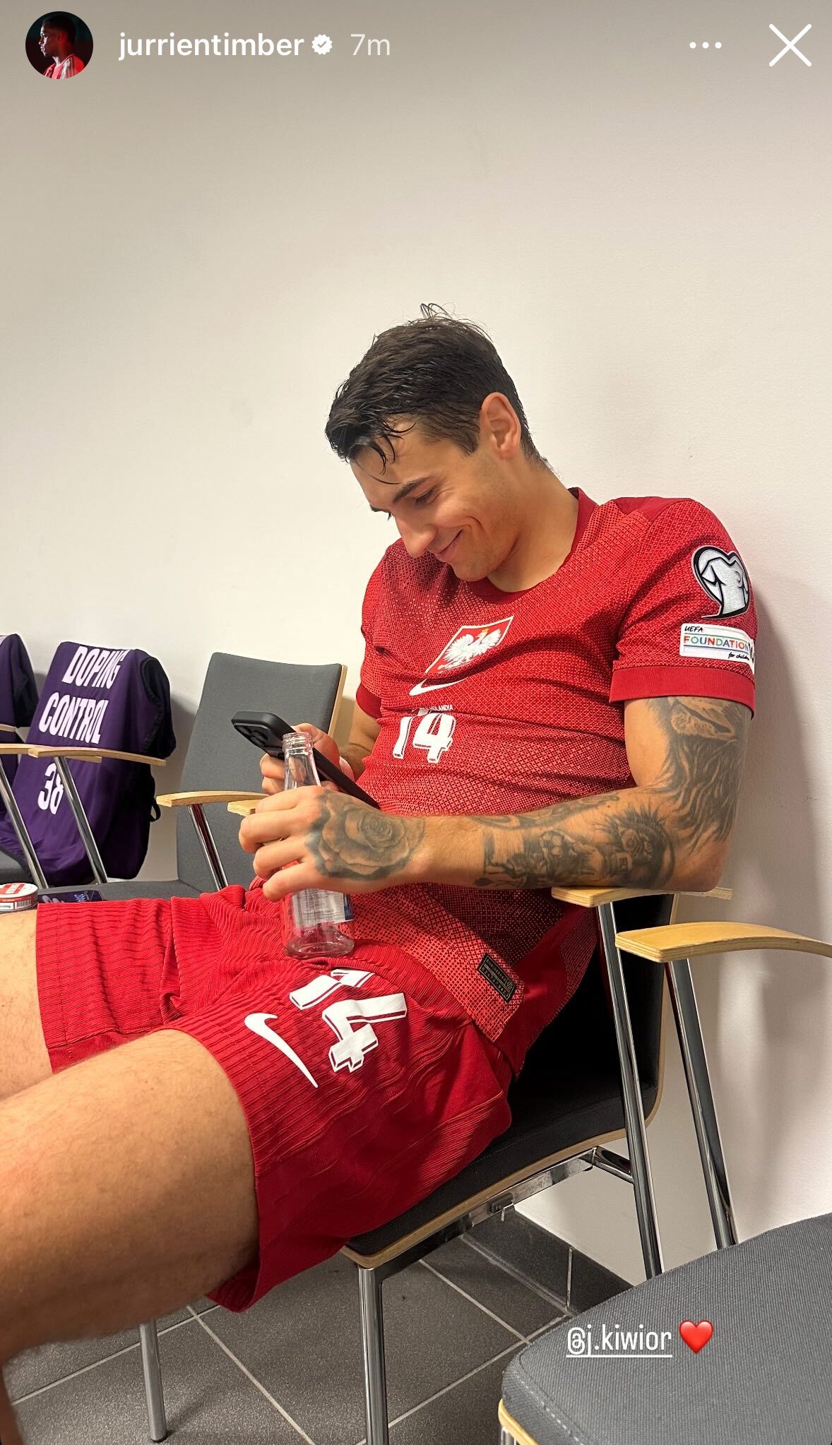 Jurrien Timber and Jakub Kiwior reunited during international duty yesterday. ❤️ pic.twitter.com/2K2M4tIbQl