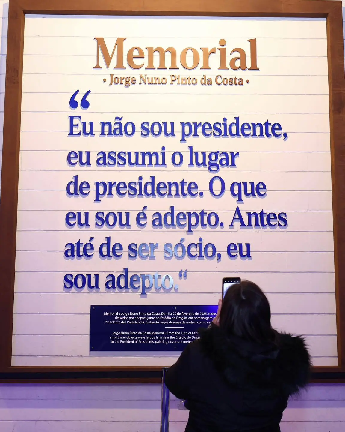O memorial a Pinto da Costa, construído a partir das homenagens espontâneas deixadas junto ao Estádio do Dragão aquando da sua morte, está disponível este domingo para visita livre. Hoje, se fosse vivo, o ex-presidente completaria 88 anos e o FC Porto decidiu facultar a entrada gratuitamente a esse espaço, entre as 10 e as 18 horas. A entrada será pelo P1 (Parque 1) do estádio.