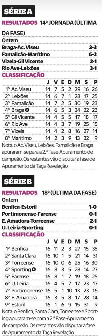 A primeira fase da Liga Revelação acabou e já são conhecidos os oito emblemas que podem sonhar com a conquista do título: Académico de Viseu, Leixões, Braga, Famalicão, Benfica, Santa Clara, Torreense e Sporting. A competição promete ser dura, com todos os clubes a evidenciar argumentos para levantar o troféu. Os restantes emblemas vão agora lutar pela Taça Revelação, garantindo ritmo competitivo até ao final da temporada.