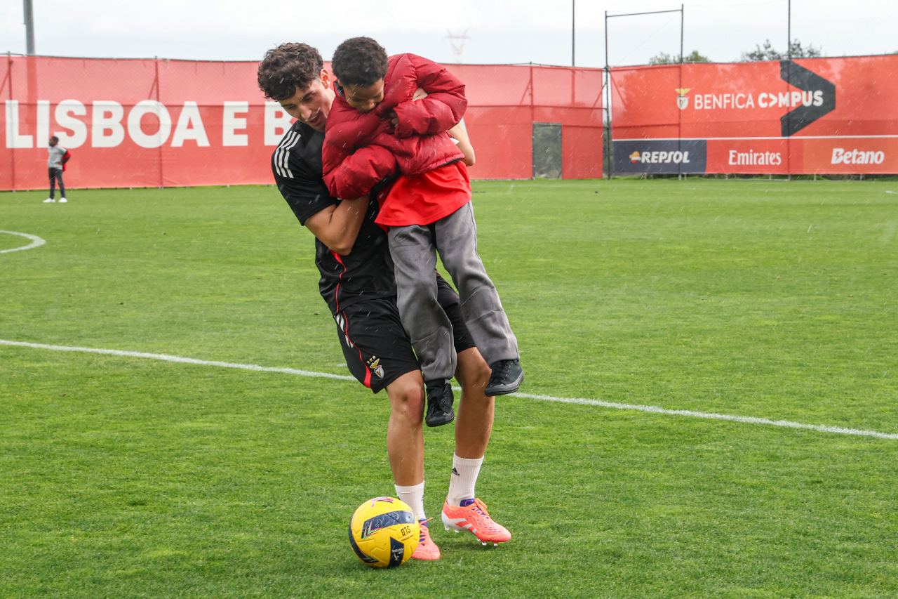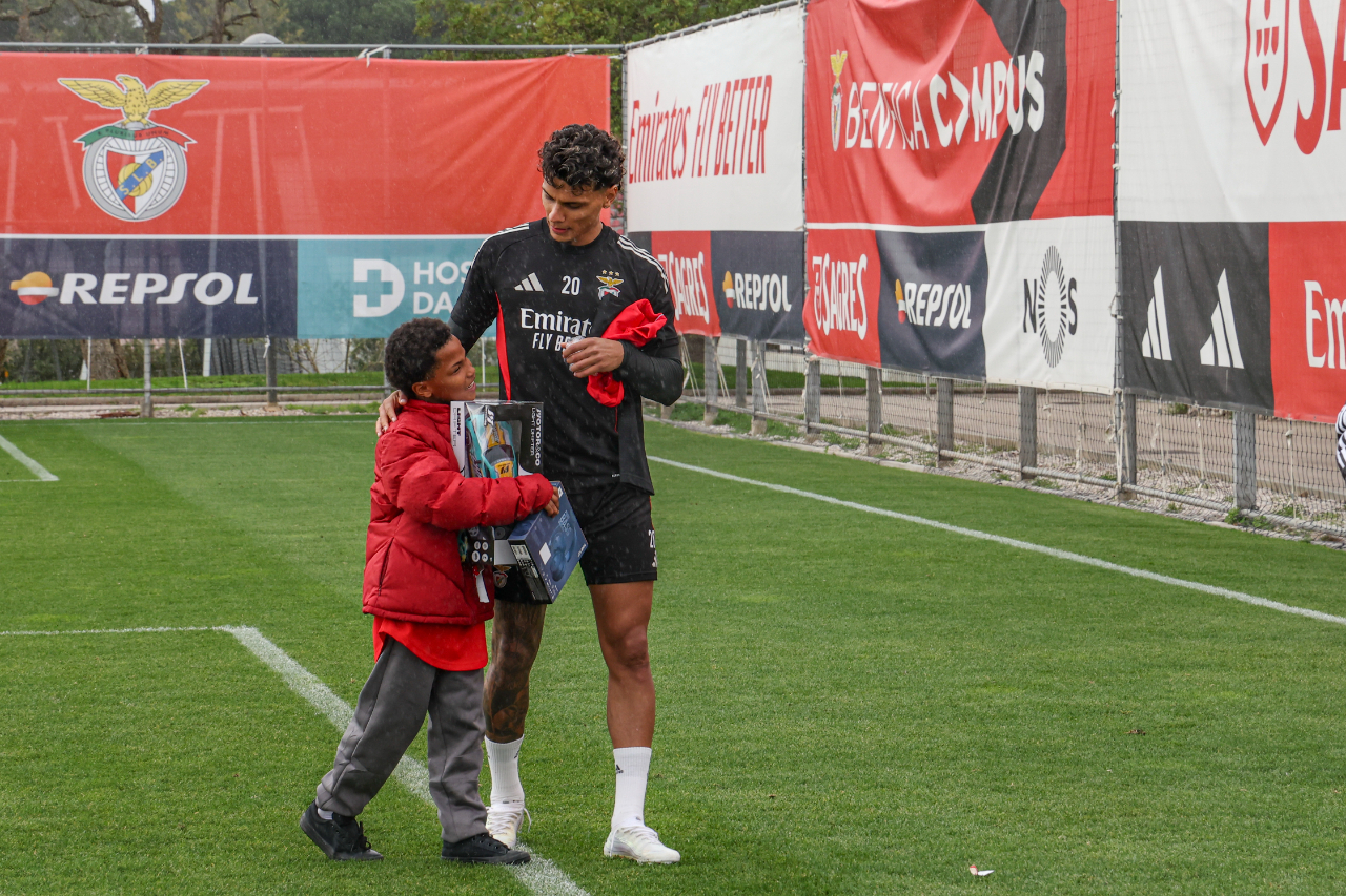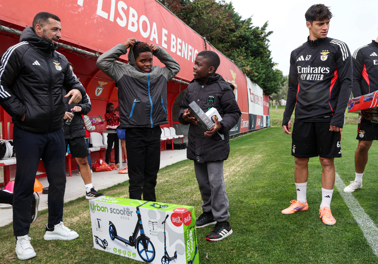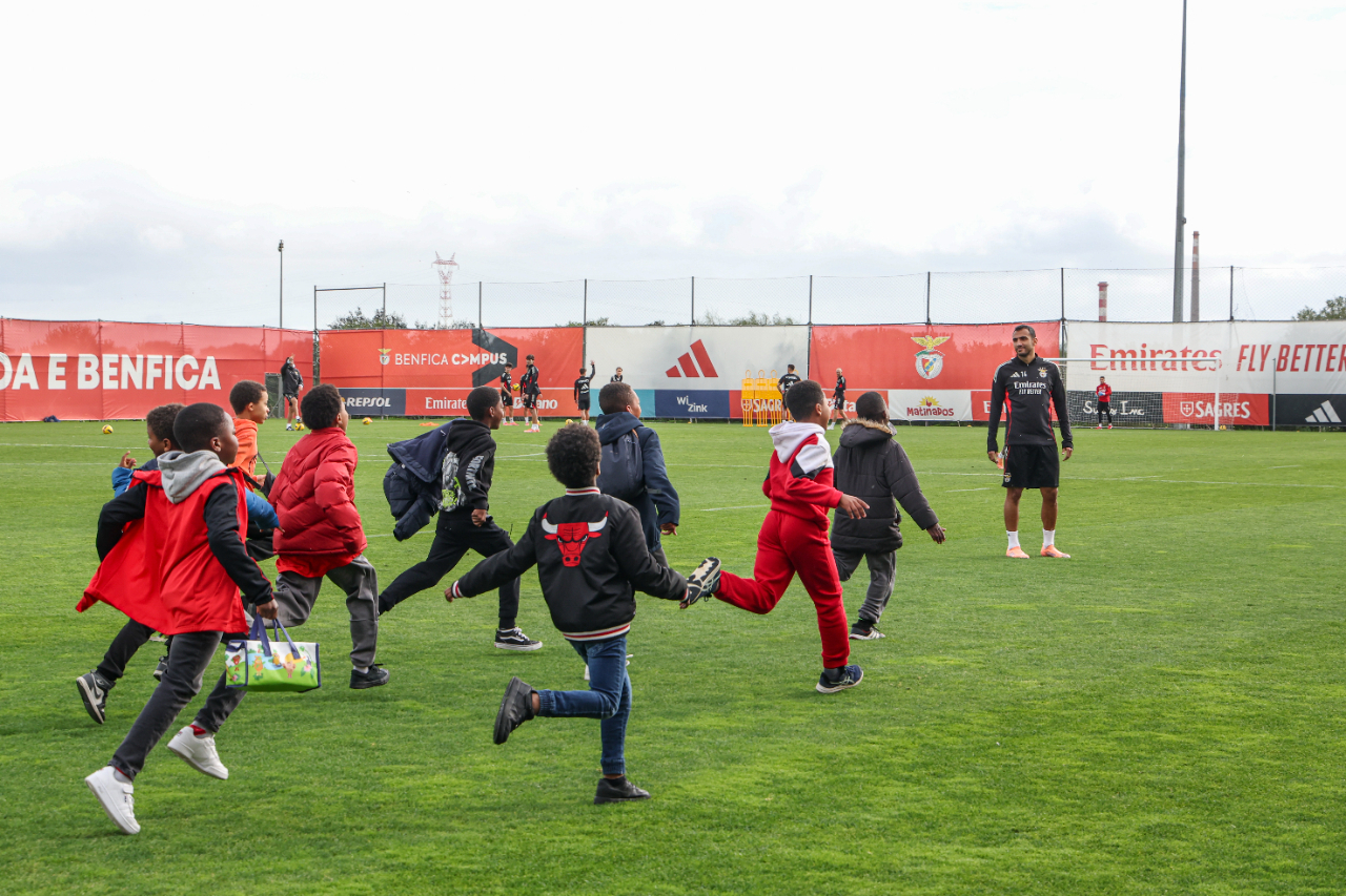 Crianças do Centro Comunitário Marta de Corroios e do Projeto Boba Studio estiveram no Benfica Campus, onde conviveram com os craques do Benfica e receberam prendas, num momento inesquecível