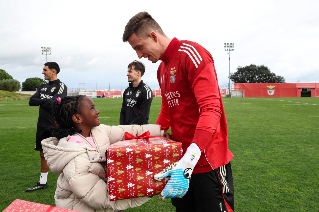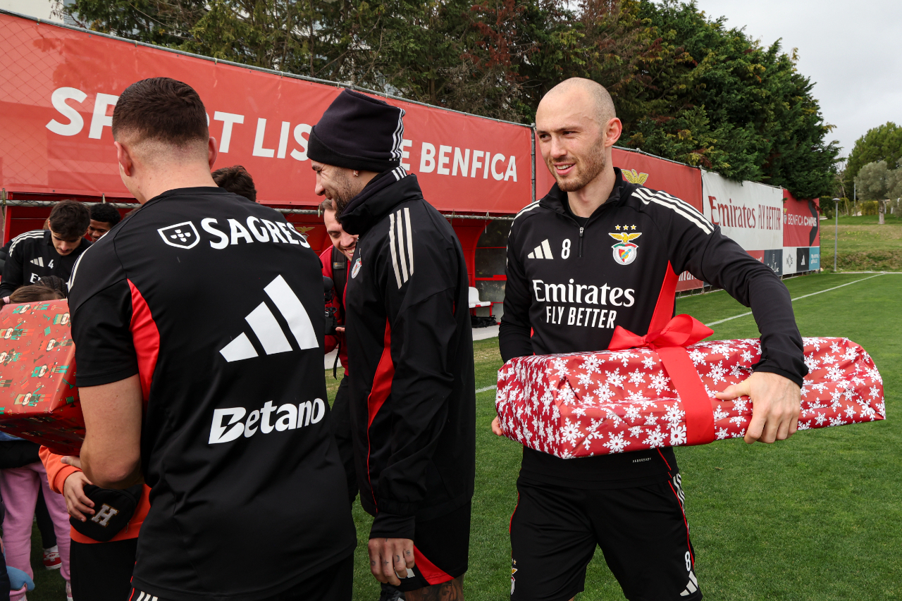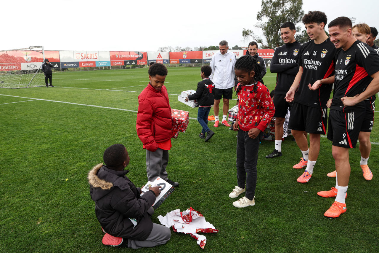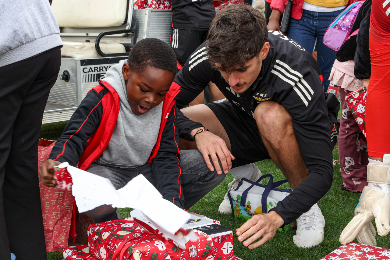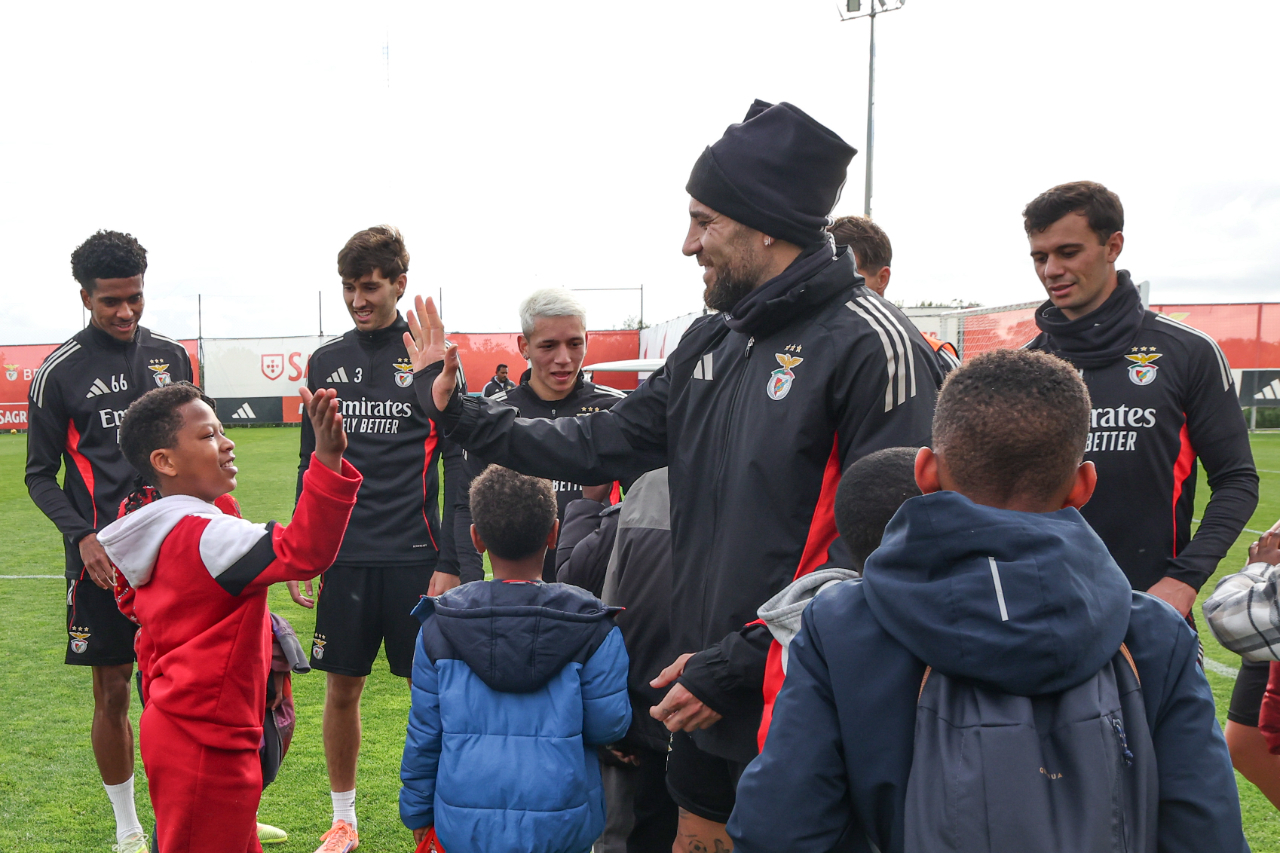Crianças do Centro Comunitário Marta de Corroios e do Projeto Boba Studio estiveram no Benfica Campus, onde conviveram com os craques do Benfica e receberam prendas, num momento inesquecível