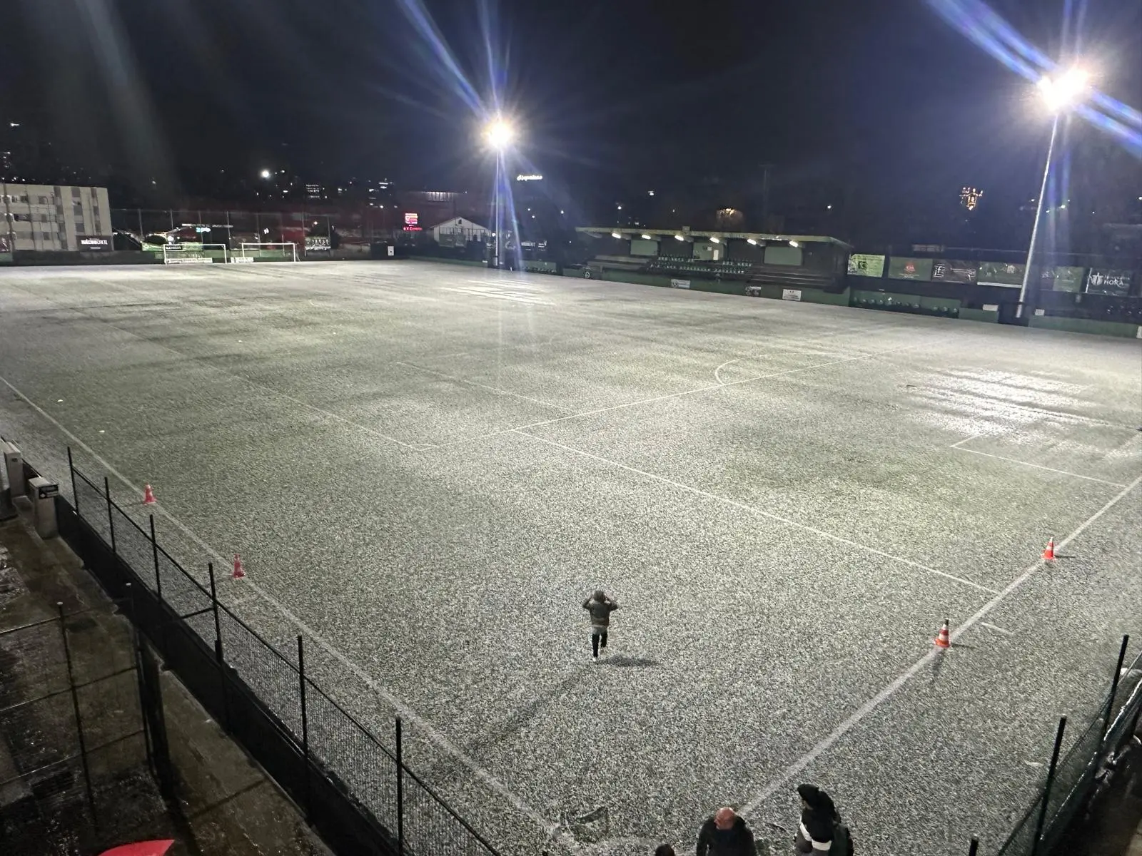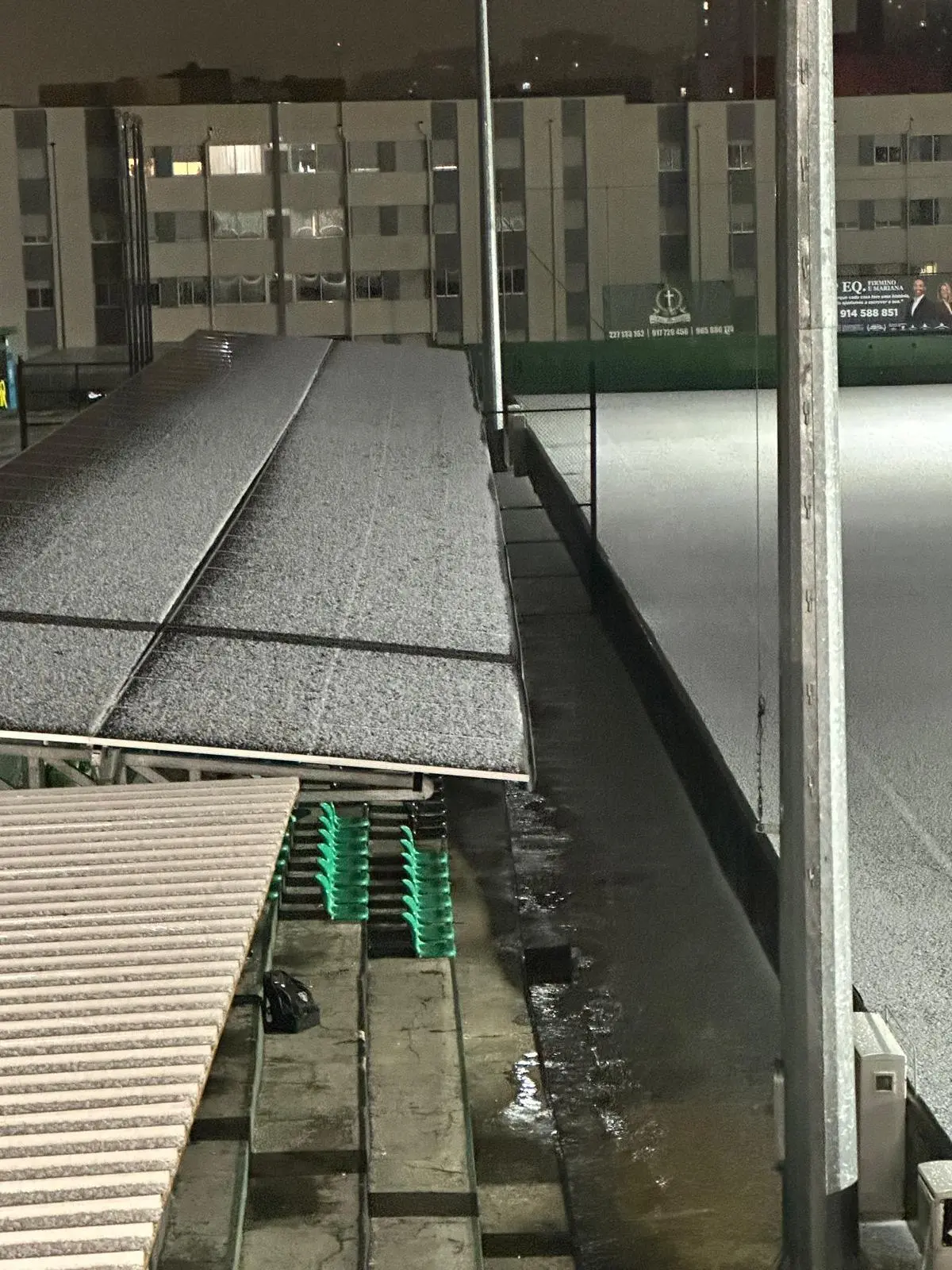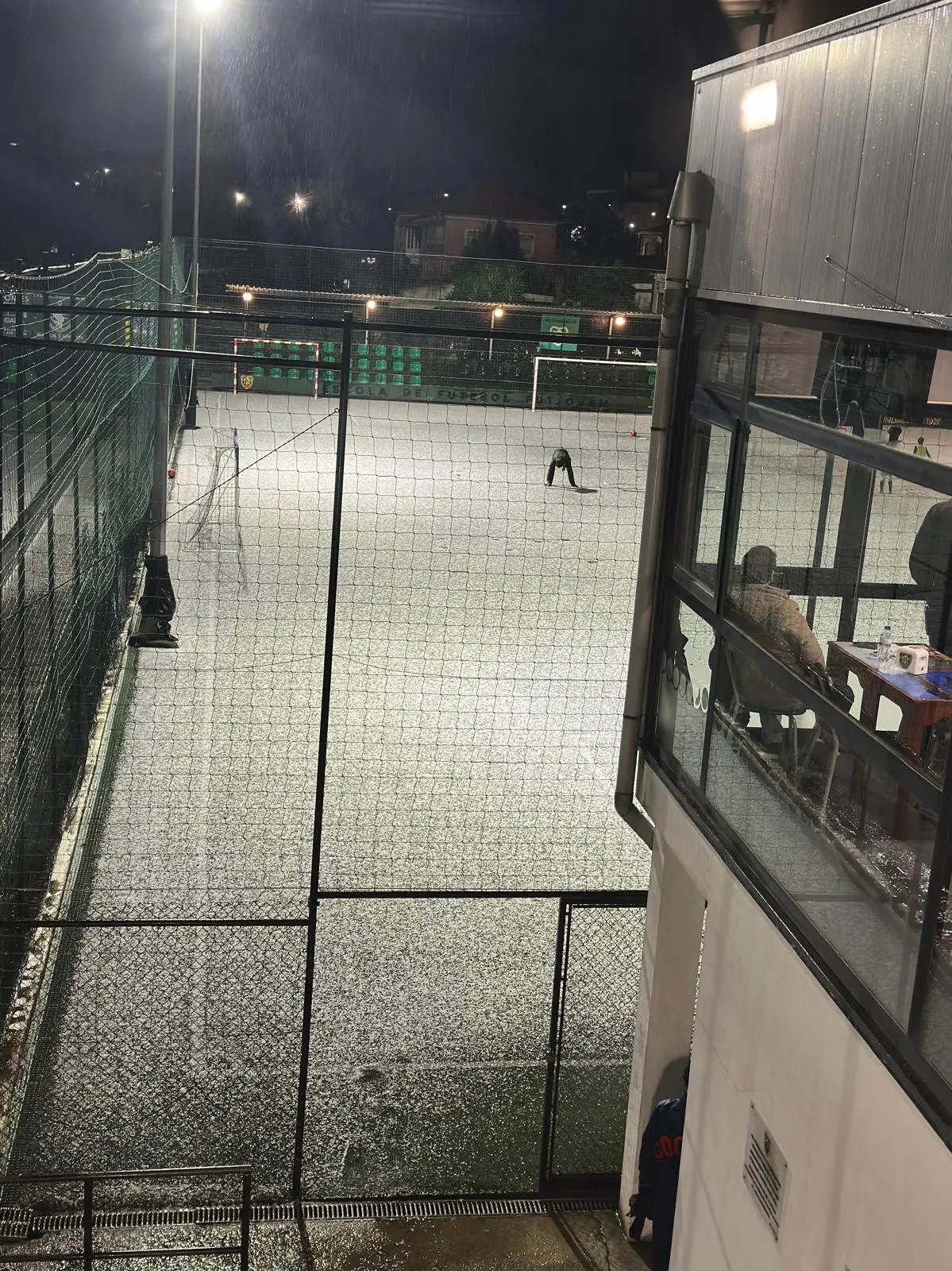 Queda de granizo deixou estádio do Coimbrões pintado de branco