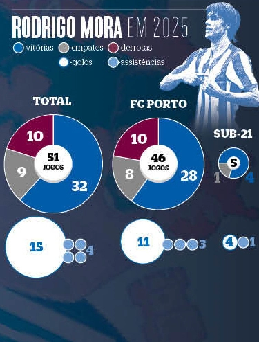 Aos 18 anos, Mora já só engana os adversários com fintas desconcertantes e os guarda-rede com remates teleguiados ao ângulo. A crítica, essa, está conquistada. O ano civil que agora acabou não viu o FC Porto conquistar qualquer troféu coletivo, mas todos assistiram à ascensão de um jovem craque talhado para grandes feitos. Sem receio das responsabilidades, carregou às costas uma equipa moribunda no semestre inicial de 2025, assinando oito golos que foram ajudando a disfarçar os maus resultados.