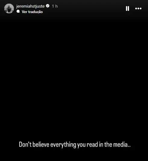 Jeremiah St. Juste, agora a trabalhar com o Sporting B depois de ter sido afastado do plantel principal, está novamente lesionado e de novo entregue à Unidade de Performance, devido a um problema muscular, foi noticiado. No entanto, esta quinta-feira, através das redes sociais, o defesa-central neerlandês parece contrariar esta ideia. "Não acreditem em tudo o que lêem na comunicação social" escreveu numa "história" da rede social Instagram.