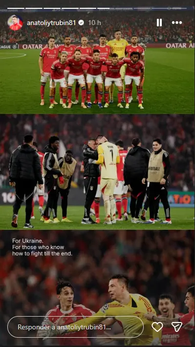 "Pela Ucrânia. Para todos aqueles que sabem como lutar até ao fim", pode ler-se numa história publicada no Instagram do guarda-redes.