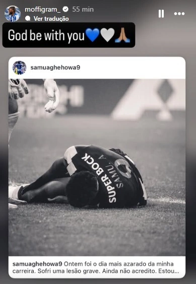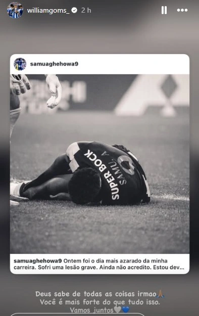 Avançado do FC Porto sofreu uma lesão grave no joelho direito e não jogará mais esta temporada. Plantel portista apoia o companheiro de equipa