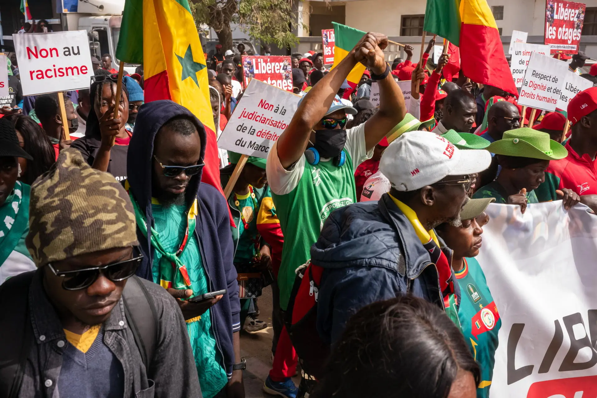 Dezenas de pessoas protestaram este sábado em Dakar contra a detenção, em Marrocos, de 18 adeptos senegaleses por alegado vandalismo no final da Taça das Nações Africanas, em meados de janeiro, noticiou a agência noticiosa francesa AFP