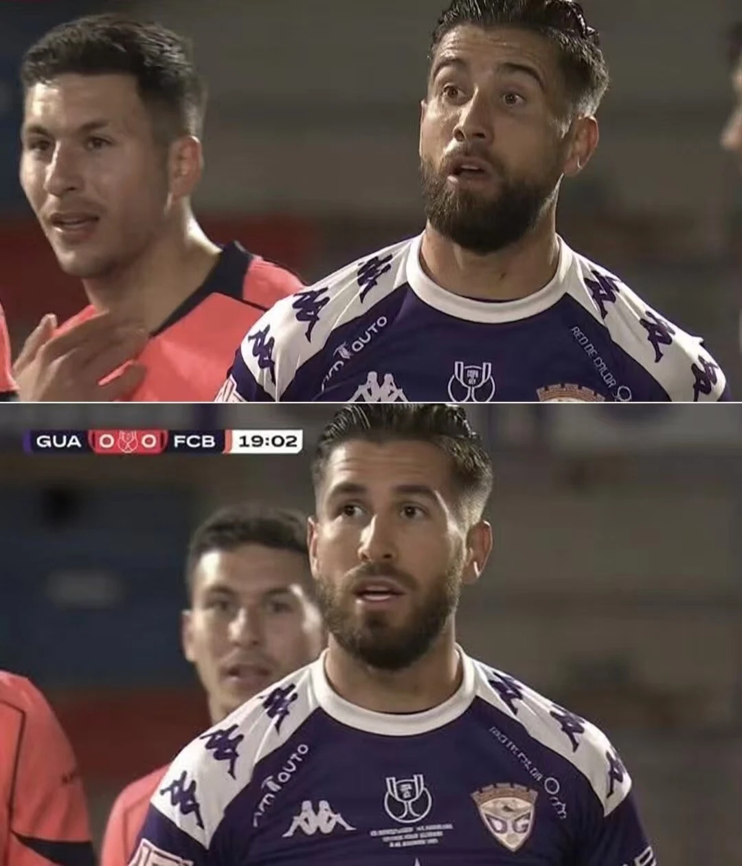 Um frame de Borja Díaz, jogador de 35 anos do Guadalajara, durante o duelo de terça-feira, com o Barcelona, para a Taça do Rei - triunfo do emblema de La Liga por 2-0 -, tornou-se viral pelas (alegadas) parecenças com Sergio Ramos.