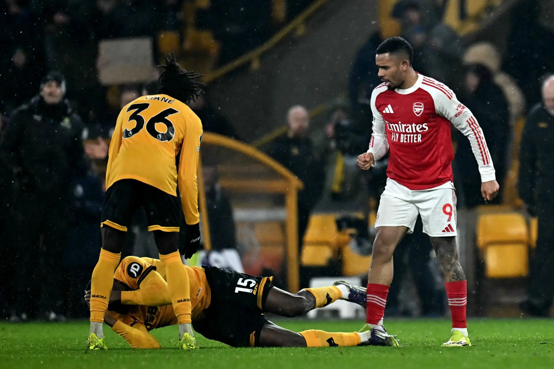 Gabriel Jesus empurrou Mosquera e instalou a confusão após o Wolves-Arsenal