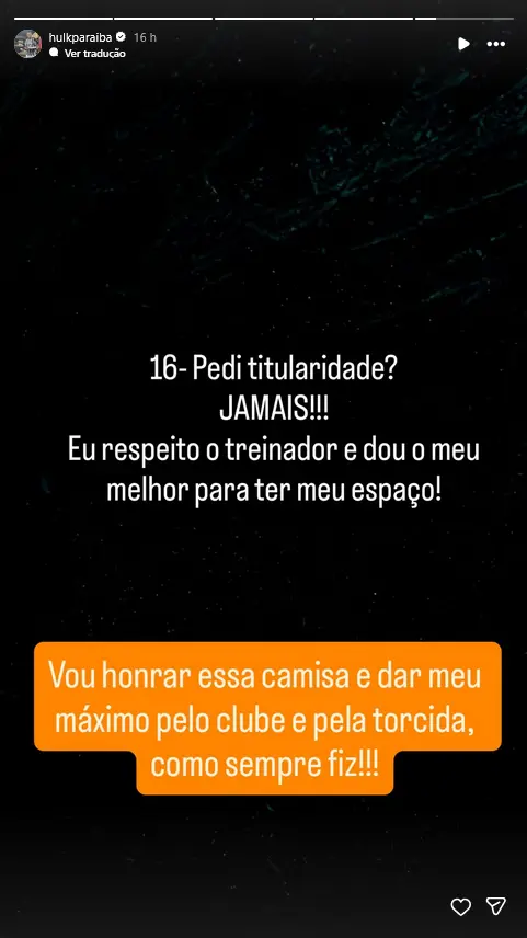 Veja o esclarecimento do jogador nas redes sociais: