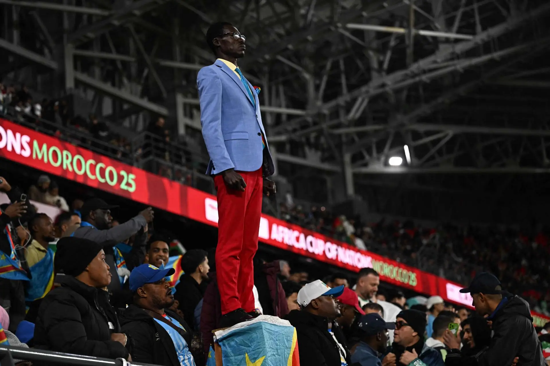 Na sequência do golo da Argélia, marcado por Adel Boulebina, aos 119 minutos do prolongamento, o argelino Mohammed Amoura, que foi alvo do Benfica no verão, provocou este famoso adepto da RD Congo, imitando a sua pose e caindo no chão, como que a dizer que estava eliminado.