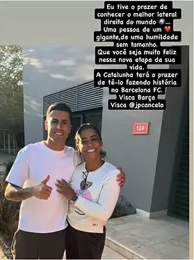 "Que você seja muito feliz nessa nova etapa da sua vida. A Catalunha terá o prazer de tê-lo a fazer história no Barcelona. Visca Barça, Visca João Cancelo", escreveu Flávia de Oliveira, mão de Malcom, colega de Cancelo no Al Hilal.