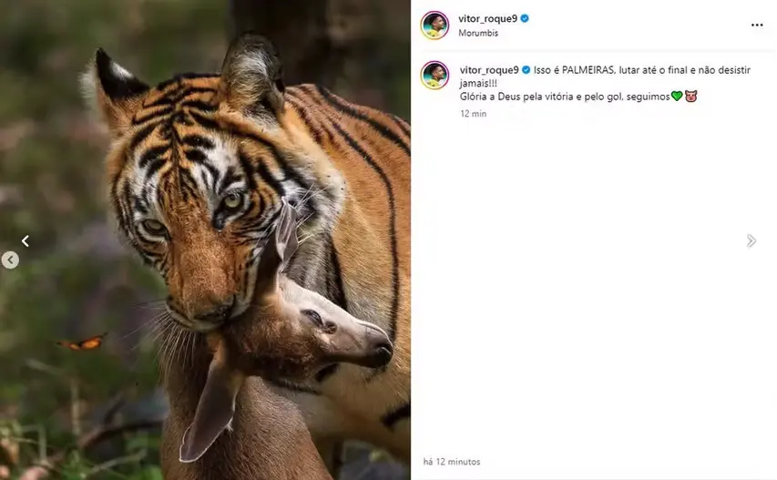 Jogador publicou fotografia de um tigre a morder o pescoço de um veado
