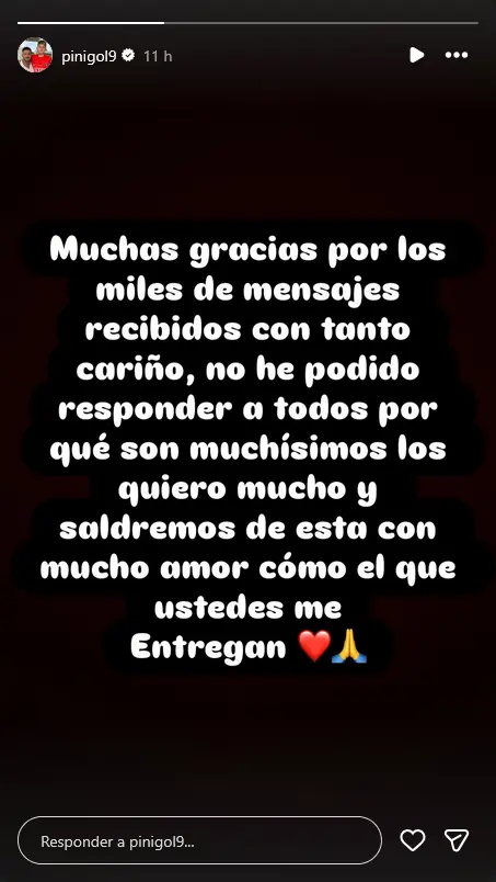 O antigo atacante agradeceu as mensagens de apoio nas redes sociais: "Obrigado pelas milhares de mensagens carinhosas que recebi. Amo-vos. Vou superar este momento também graças ao amor que demonstraram por mim"