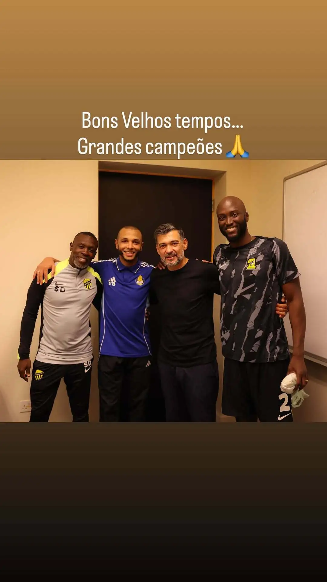 O Al Ittihad, do treinador Sérgio Conceição, do adjunto Siramana Dembélé e do médio Danilo Pereira, recebeu e goleou o Al Gharafa, de Yacine Brahimi, por 7-0, ontem, para a Liga dos Campeões asiática. No final do jogo, os ex-FC Porto tiraram uma fotografia e Sérgio Conceição partilhou-a nas redes sociais. "Bons velhos tempos. Grandes campeões", escreveu.