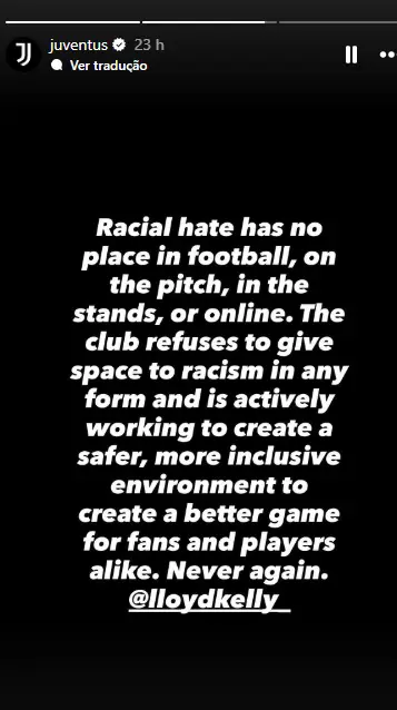O episódio aconteceu depois da pesada derrota da formação de Turim em casa do Galatasaray, por 5-2, jogo no qual o ex-Newcastle foi titular. "Ódio racial não tem espaço no futebol, no campo, nas bancadas ou online. O clube recusa-se a dar espaço para o racismo em qualquer forma e está a trabalhar ativamente para criar um envolvimento mais seguro e inclusivo, de modo a proporcionar um melhor jogo para os adeptos e jogadores. Nunca mais", reagiu a Juventus.