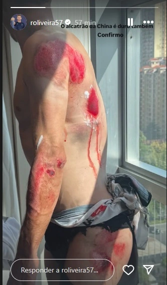 Rui Oliveira (UAE Team Emirates) recorreu esta terça-feira às redes sociais para mostrar o estado em que ficou o seu corpo na sequência de uma queda no Tour de Guangxi, na China. "O alcatrão da China é duro também. Confirmo", escreveu o ciclista português, bem-disposto, no Instagram.