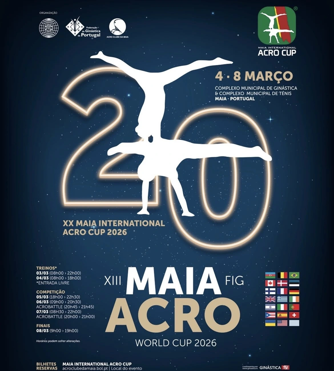A 20ª edição do MIAC decorre entre os próximos dias 5 e 8 de março, voltando a colocar a Maia no mapa Mundial da modalidade, visto que, ao mesmo tempo, decorre também a FIG Acro World Cup 2026, a Taça do Mundo de seleções que vai na sua 13ª edição.