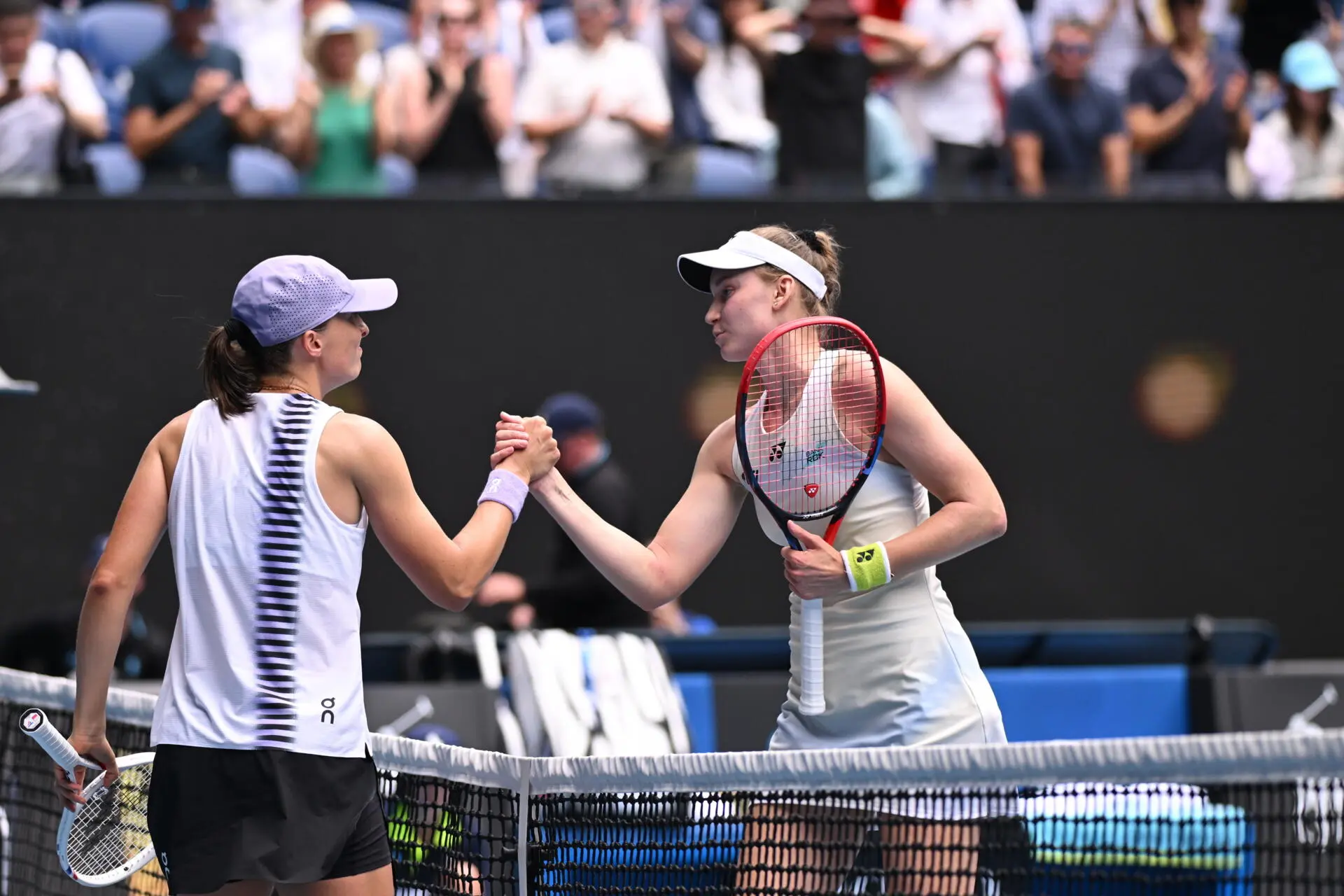 Rybakina precisou de apenas uma hora e 35 minutos para afastar Swiatek em dois parciais, por 7-5 e 6-1, e qualificar-se pela segunda vez para as meias-finais do primeiro 'major' da temporada, fase que atingiu em 2023.