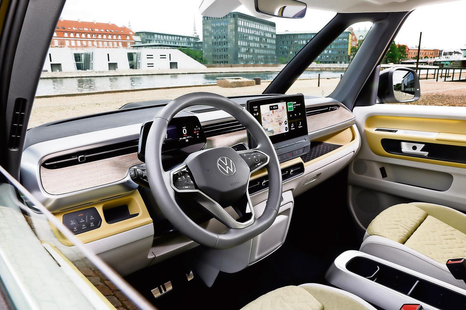 O ID Buzz tem ar condicionado automático de três zonas com painéis de controlo para os passageiros traseiros. Dispõe de iluminação ambiente de dez cores e sistemas de segurança onde se inclui a travagem de emergência autónoma.