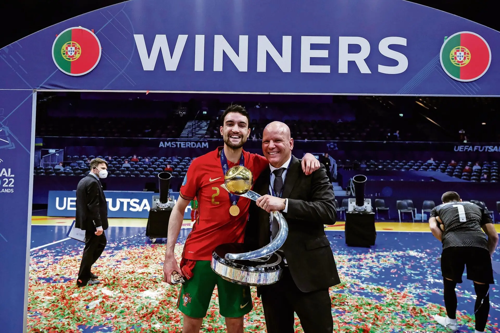 Portugal é bicampeão europeu de futsal e começa a defesa desses últimos títulos, conquistados em 2018 e 2022, no sábado, contra a Itália. Numa competição disputada na Eslovénia, Letónia e Lituânia, os lusos estão inseridos no grupo D, onde, além dos transalpinos, enfrentam a Hungria e Polónia. André Coelho é um dos mais experientes entre os 14 escolhidos por Jorge Braz e, a O JOGO, é claro sobre objetivos. "A nossa obrigação é sempre ganhar, embora não possamos dizer que estamos obrigados a ser campeões. Temos de dar o nosso melhor e, dado o nosso estatuto, queremos revalidar o título", atira o fixo, que esteve nessas conquistas europeias, bem como na vitória do Mundial em 2021 e na Finalíssima em 2022.